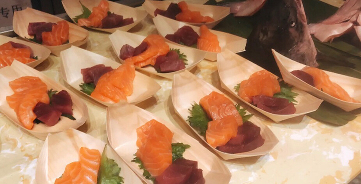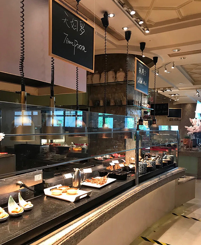 一层就是自助餐,整体透着一股高大上的感觉,除了食物,还有整体的氛围。自助餐种类齐全,海鲜可以吃到爽,三文鱼,螃蟹,虾,螺等等都有,三文鱼冷热都有,羊肉串和烤羊排货真价实,味道正宗。甜品种类多,吃的特别的过瘾。