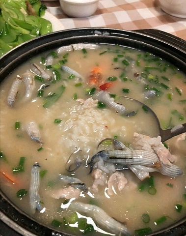 【环境】店挺大,装修很不错,干净卫生 【服务】服务态度很好 【口味】招牌沙虫粥:生米现煮的粥很有口感,沙虫很大,虾新鲜,加上瑶柱、海参,份量足,味道鲜甜,好吃! 豉汁炒水芹:水芹有芹菜口感,豉汁很香