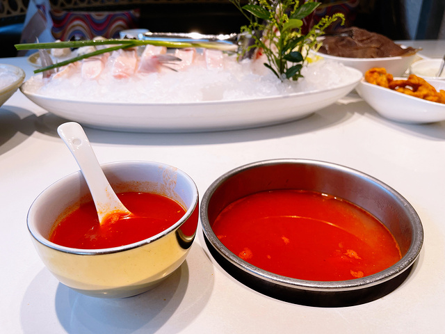 中午和朋友想吃火锅,正好这家火锅店离单位不远,就订在这里 地址:呼和浩特市赛罕区如意开发区东岸国际东门香槟街 环境:这应该是呼市环境最好的火锅店了,和传统火锅店的装修不同,这家火锅店的装修更像是吃西餐的地方 招牌:他家的招牌锅底就是这个番茄锅,涮菜之前先喝一碗汤,酸酸甜甜的很是开胃 💰人均:200元 🅿️:附近不好停车,有就餐计划的建议早一点到
