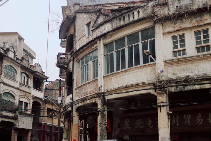 破落的骑楼,依然能感觉到几十年前的热闹。 没有商业化,没有游客,还能听到熟悉的家乡话。 墙皮斑驳,苔藓附生,比广州的骑楼看着有感觉。 很值得过来打卡拍照。 附近吃的很便宜,价格是广州的一半以下。 在广州就有大巴和高铁到江门,去三十三墟街打车也不贵。