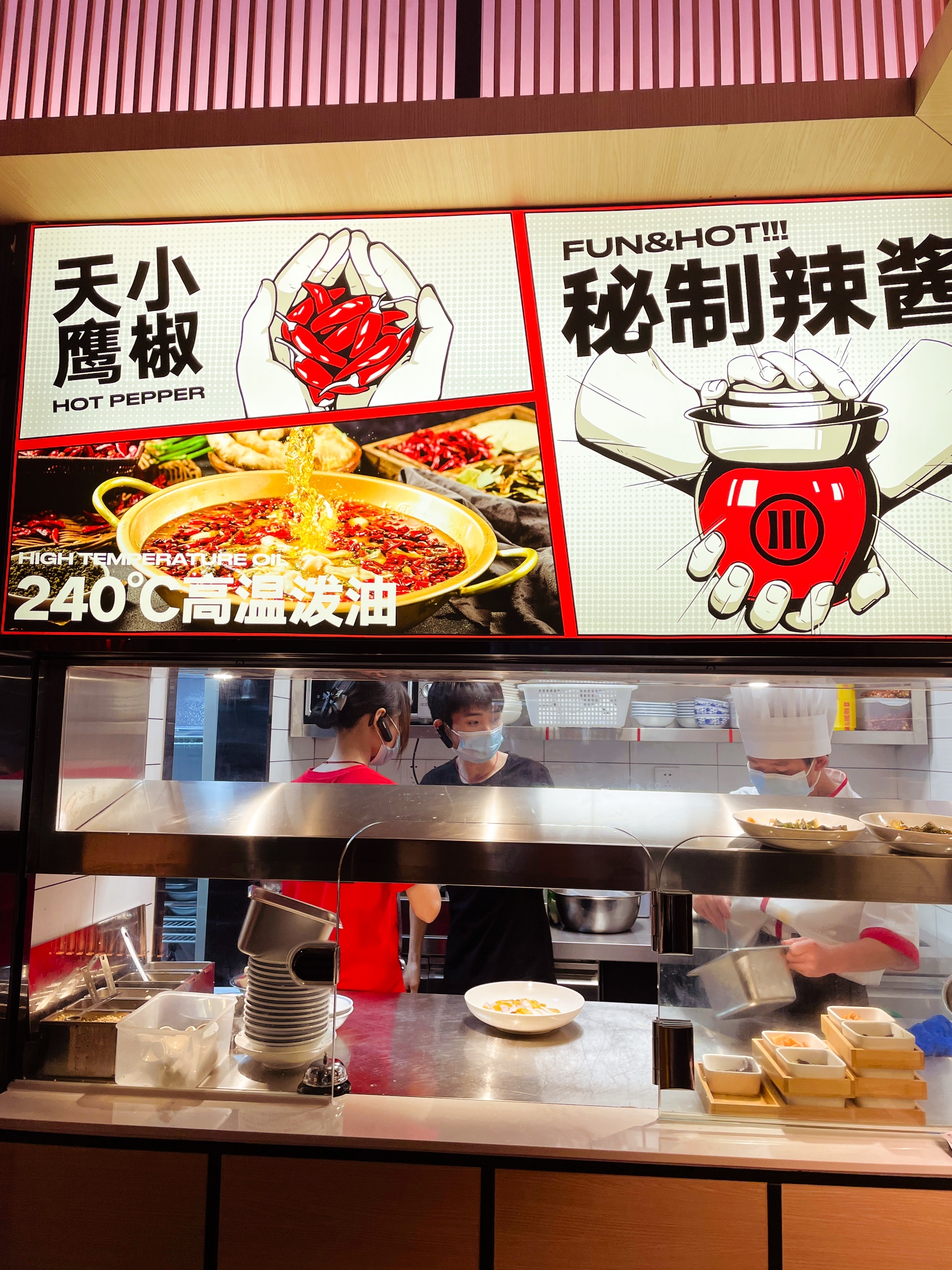 6.18第一天傍晚从富力中心A区办公室直接下楼走到C区中庭一层就是1栋,这家店装修风格一改之前蜀都丰的川味仿市井巴渝风格,新潮轻快,还好来得早,到了不用排队。透明的操作台,可以透过玻璃看到师傅们在忙着现杀活鱼。现在蜀都丰门店都用微信扫码点餐,当然来了肯定要吃水煮鱼,他们家的招牌,有黑鱼、草鱼2种鱼可选,制作有酸菜,沸腾,水煮3种做法,直接先点招牌水煮黑鱼等。