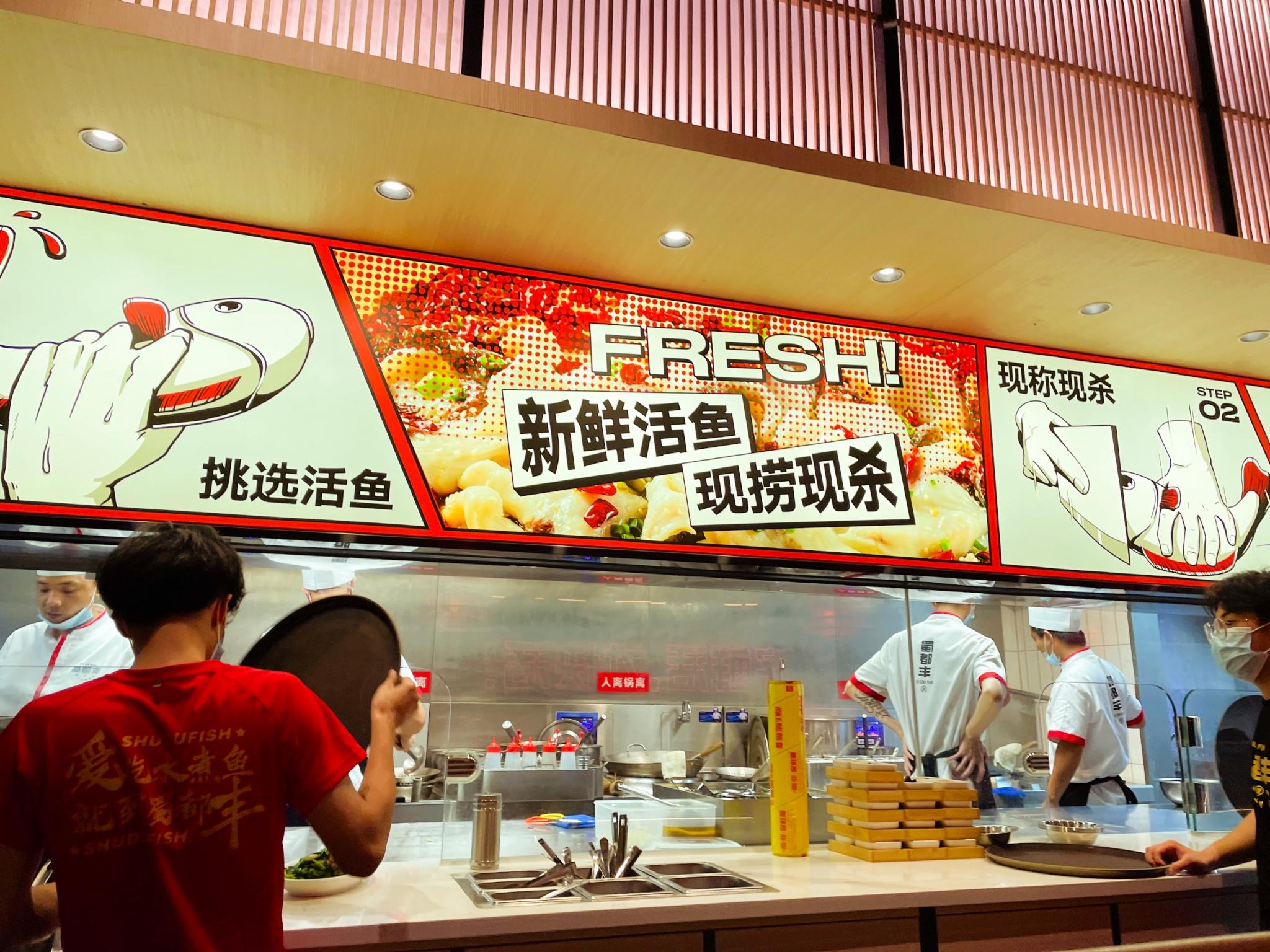 蜀都丰手工水煮活鱼算是目前福州水煮鱼餐厅的扛把子,店越开越多,源于其口号“坚持现杀活鱼”,一直以来坚持活鱼手工现杀、现片、现煮。