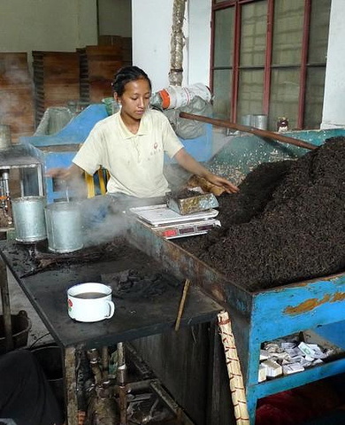 这次误打误撞地来到基诺山,话说基诺族是一个古老的民族,“基诺”是民族的自称,过去汉语多音译为“攸乐”,意思是“跟在舅舅后边”,加以引申即为“尊崇舅舅的民族”。1979年6月份经民族确认,成为中国的第56个民族。这次我们拜访的这家普洱茶厂,主要员工全是基诺族人。 给我们泡茶的MM也是基诺族人,虽然皮肤黑黑的,但是五官很美丽,还有深深的眼窝和高高的颧骨,感觉很漂亮,有一种独特的少数民族美。