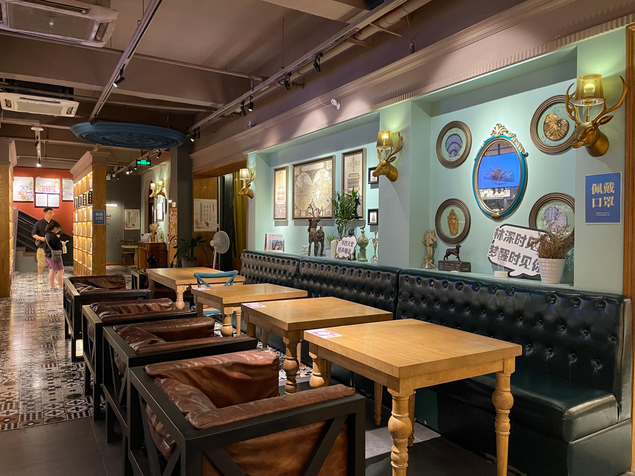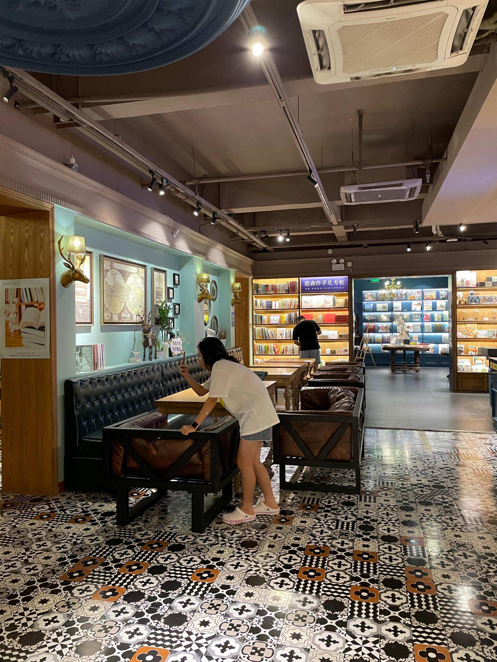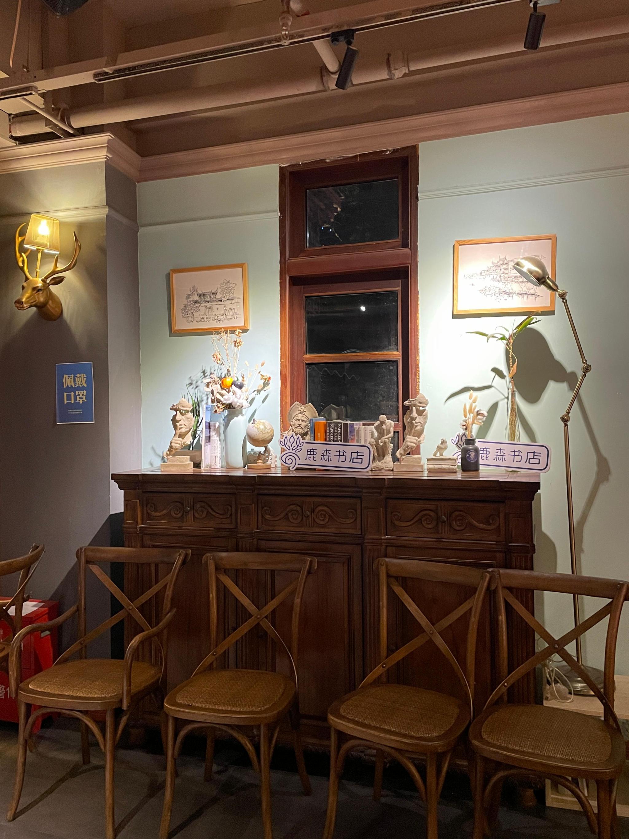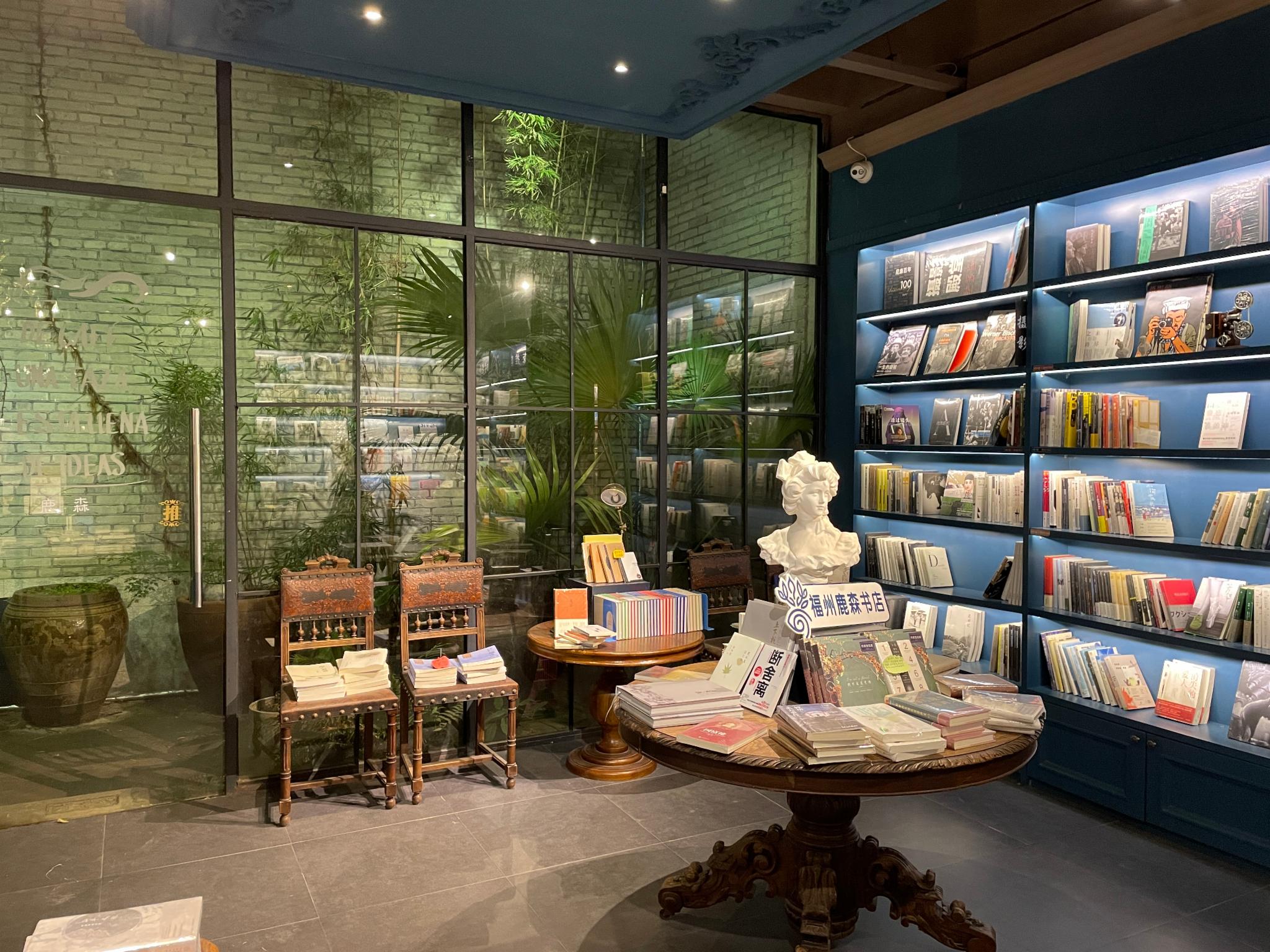 鹿森书店是福州一家本土发展起来的书店,据说店名“鹿森”,来自于《诗经·小雅》中的“呦呦鹿鸣,食野之苹”一句。上下杭店位于福州台江区上下杭景区里,顺着沿河道路慢悠悠地走,不远就能看到鹿森书店一派中式古典风韵的外观建筑,但门里却是复古欧式风格。