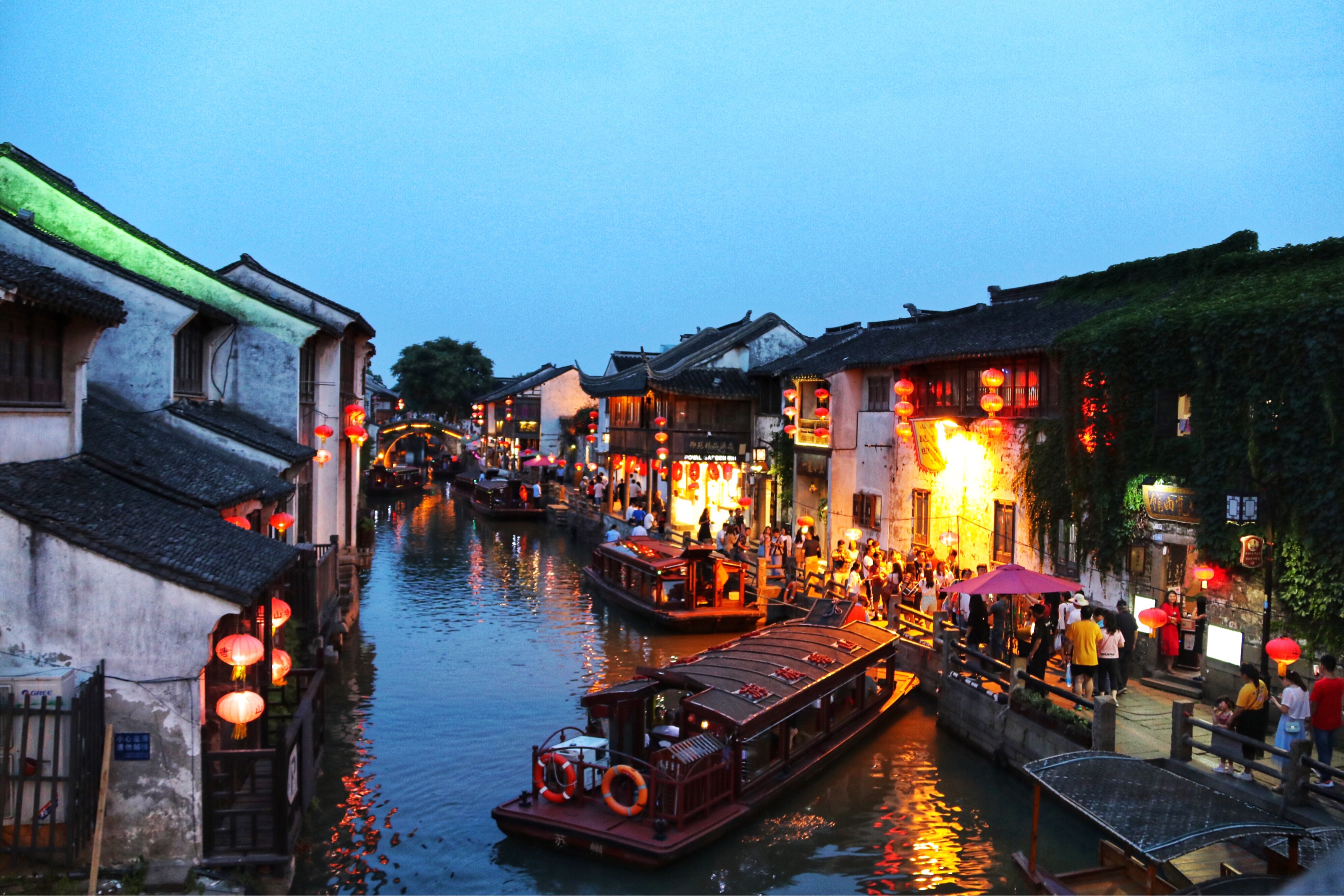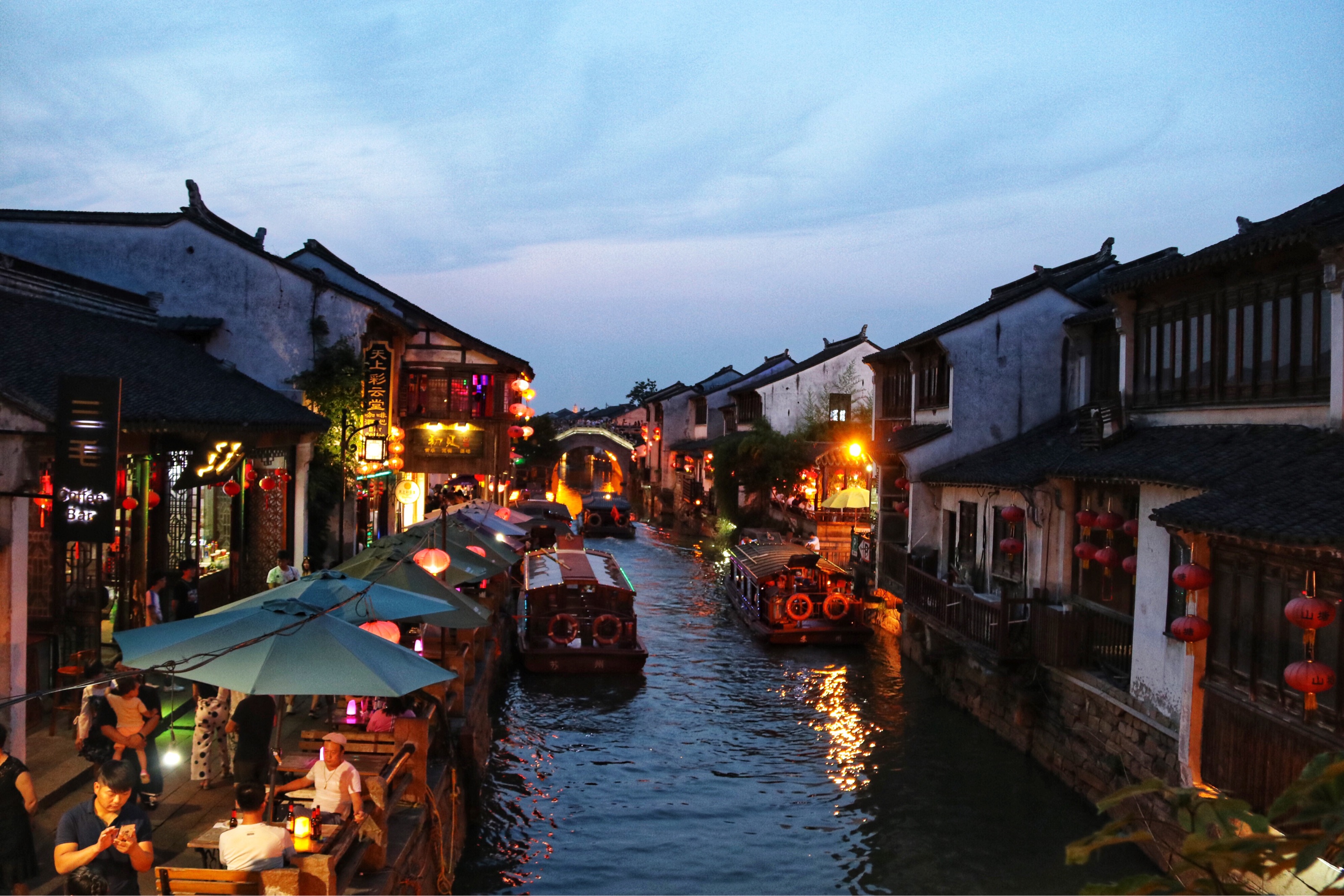 抵达苏州的第一站,自然是七里山塘啦~据说也是夜景也超级美,亭台楼宇,溪流边望着夕阳西下,坐在一家小酒馆里,听着音乐~沉迷当下如此美好的夜晚~人生何乐而不为;顺便可以解决一下晚餐,美食也很多,特别是园区出口处一家烤猪蹄,绝了~