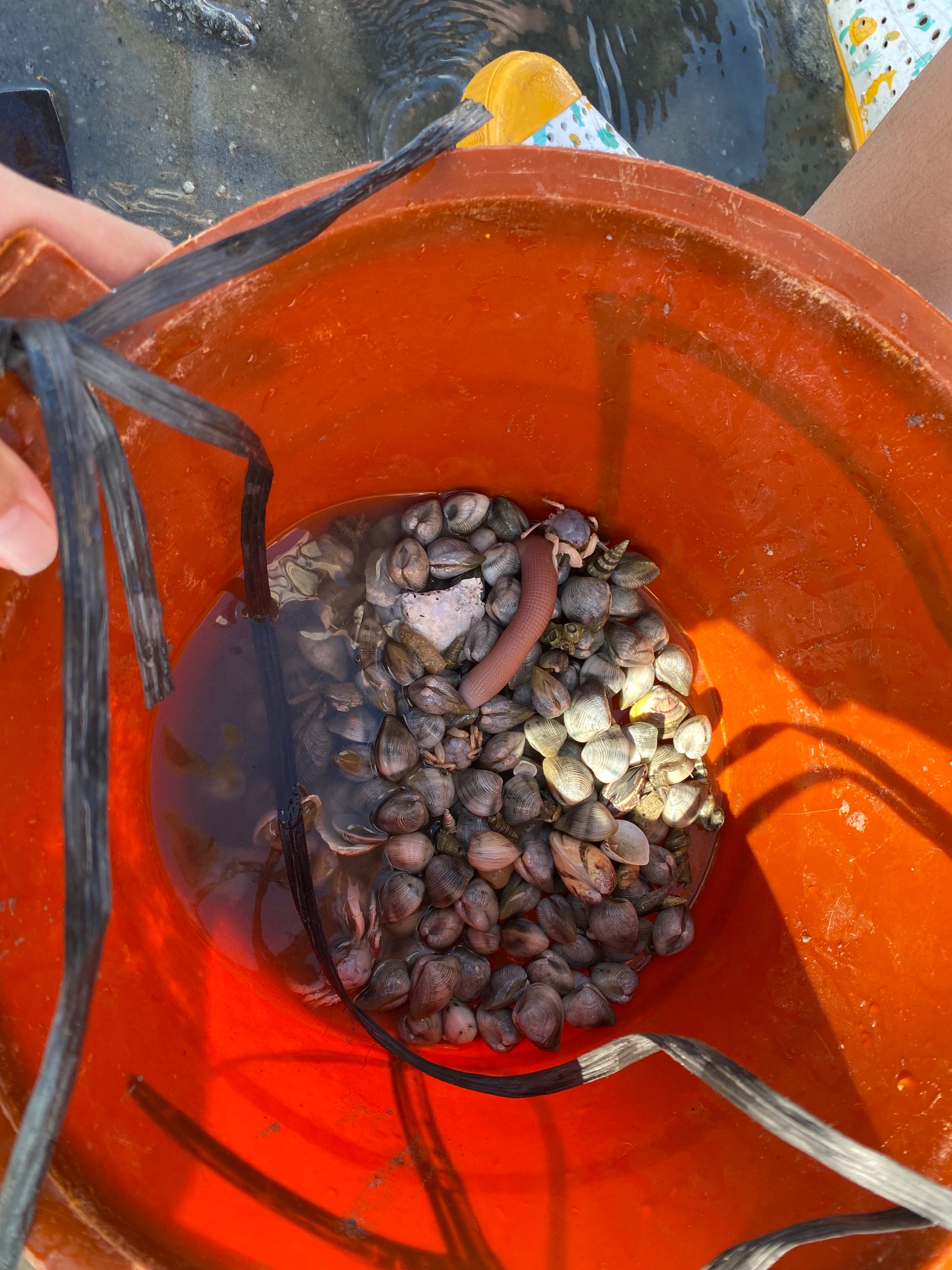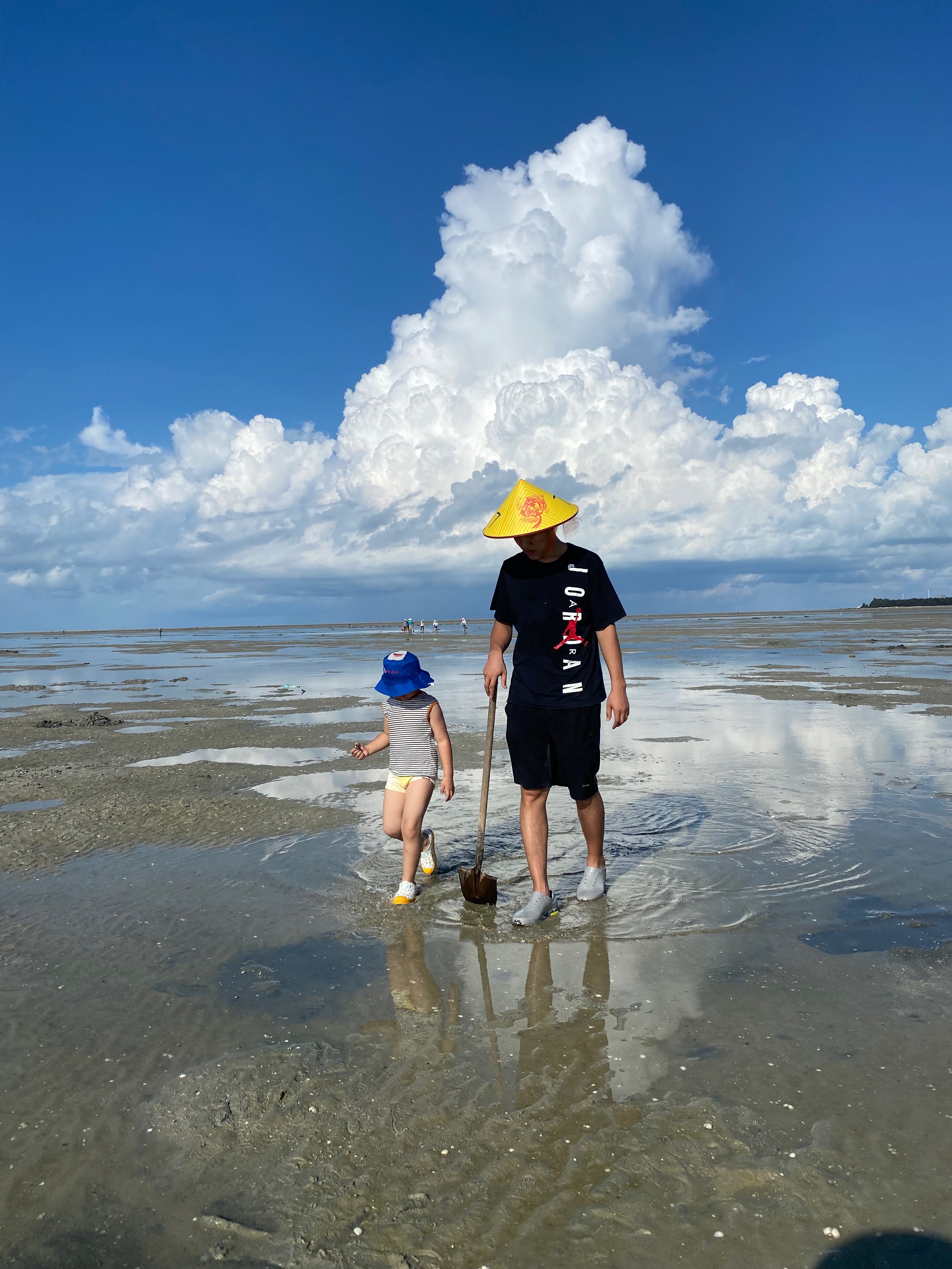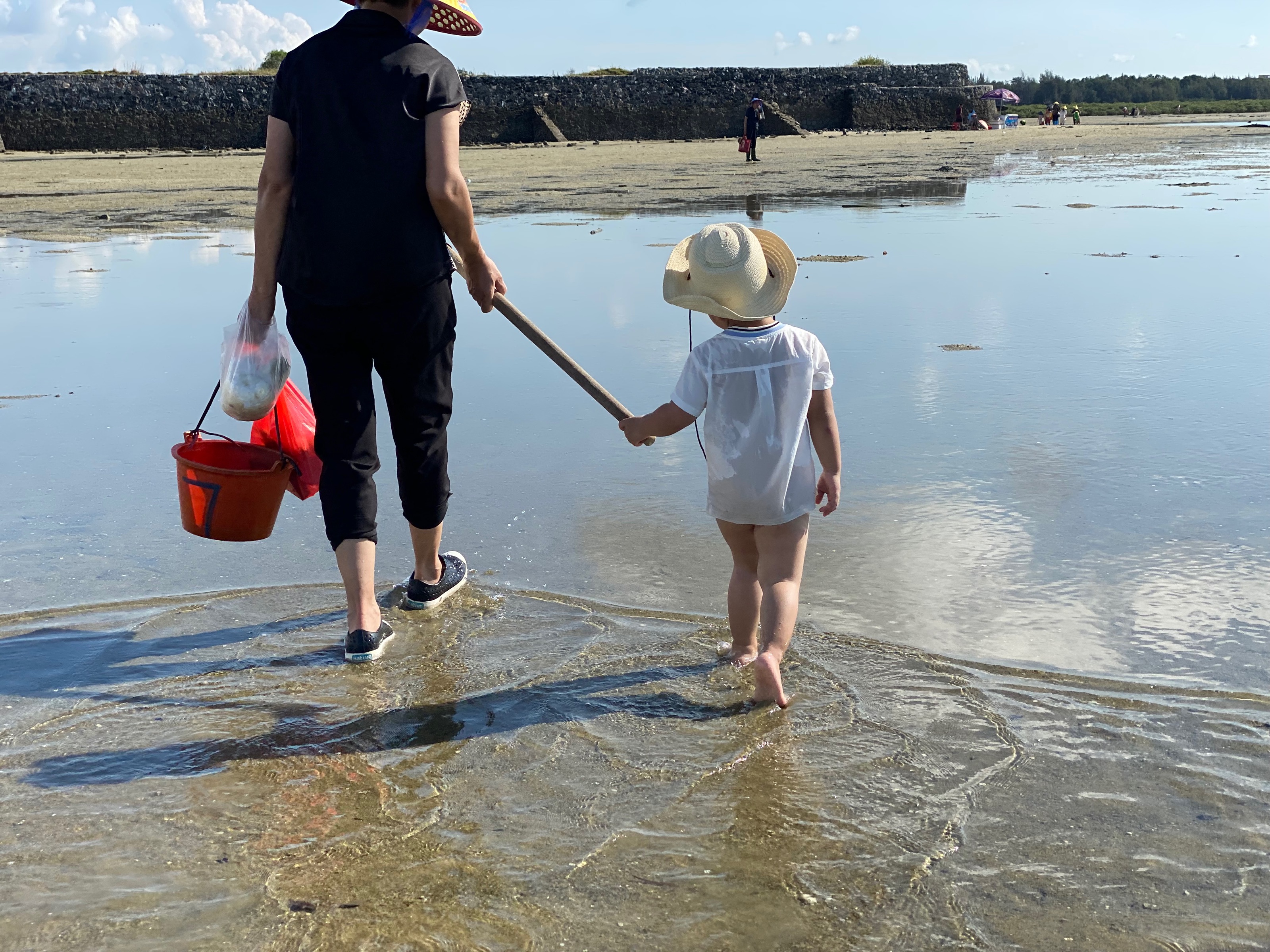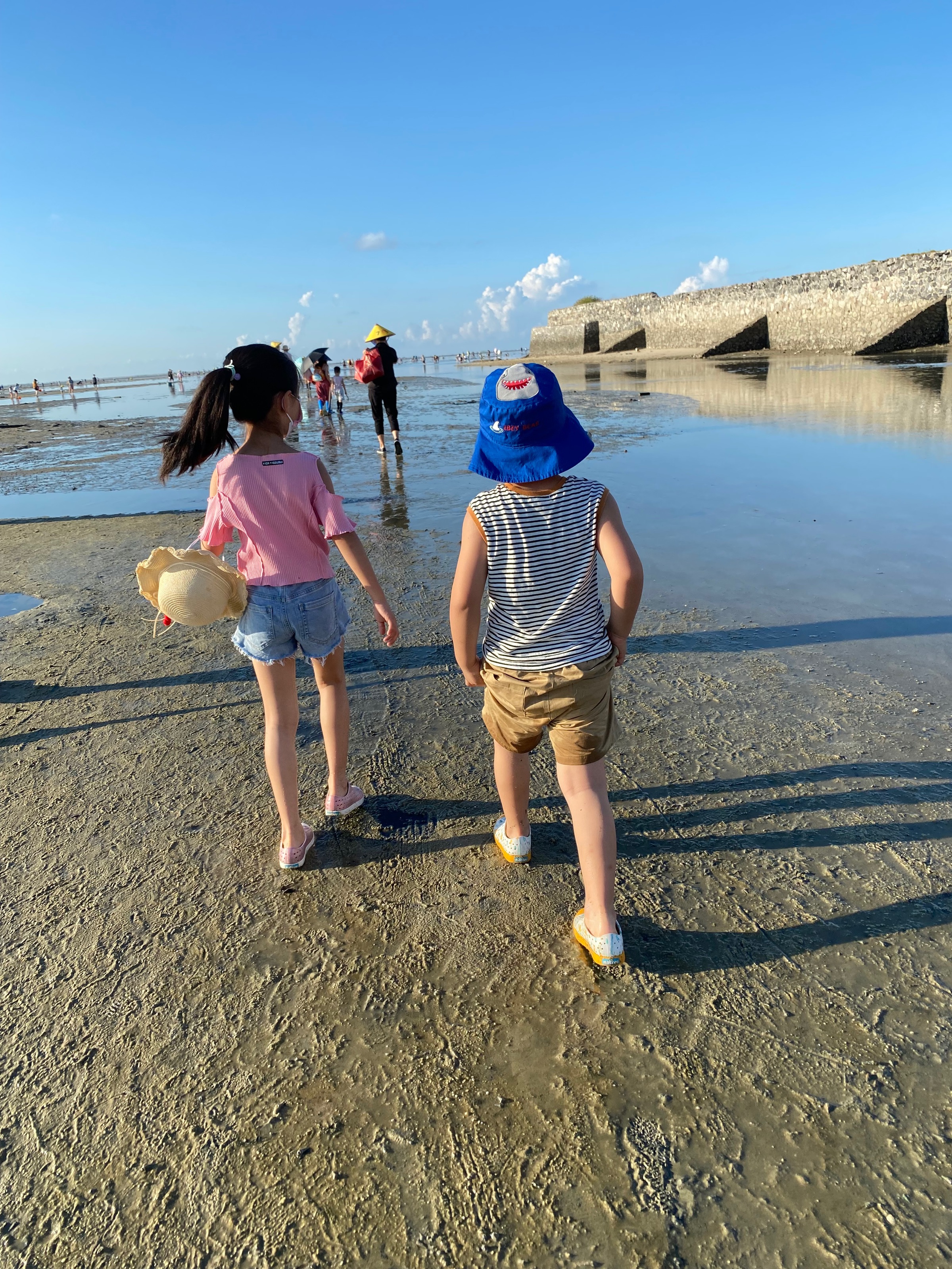 早上为了去赶海,6点多我们就起来了。昨天晚上睡的不算太早,本来还担心小朋友们起不来,一说要去赶海,要去挖贝壳和小螃蟹,都很顺利的起床了。