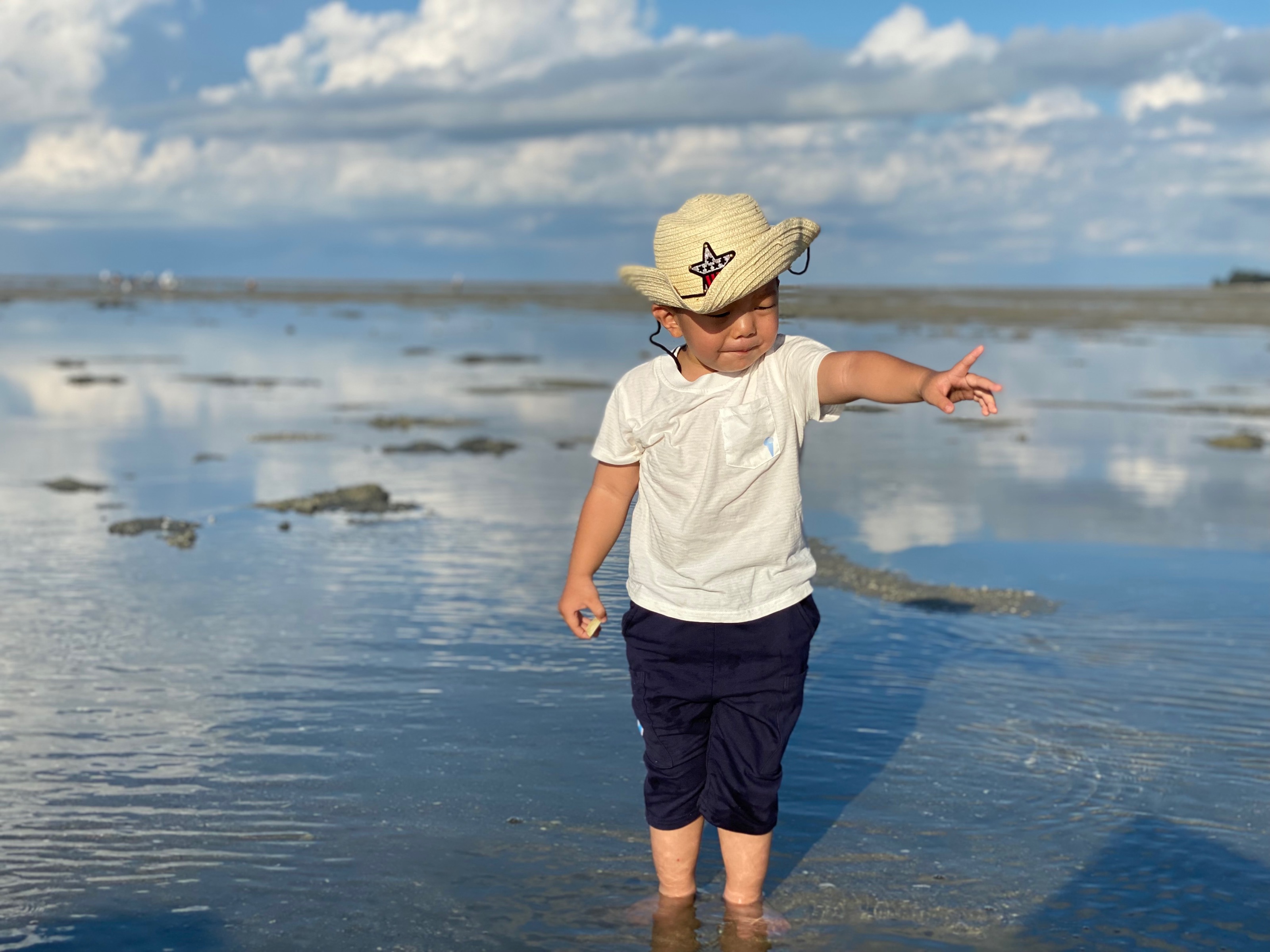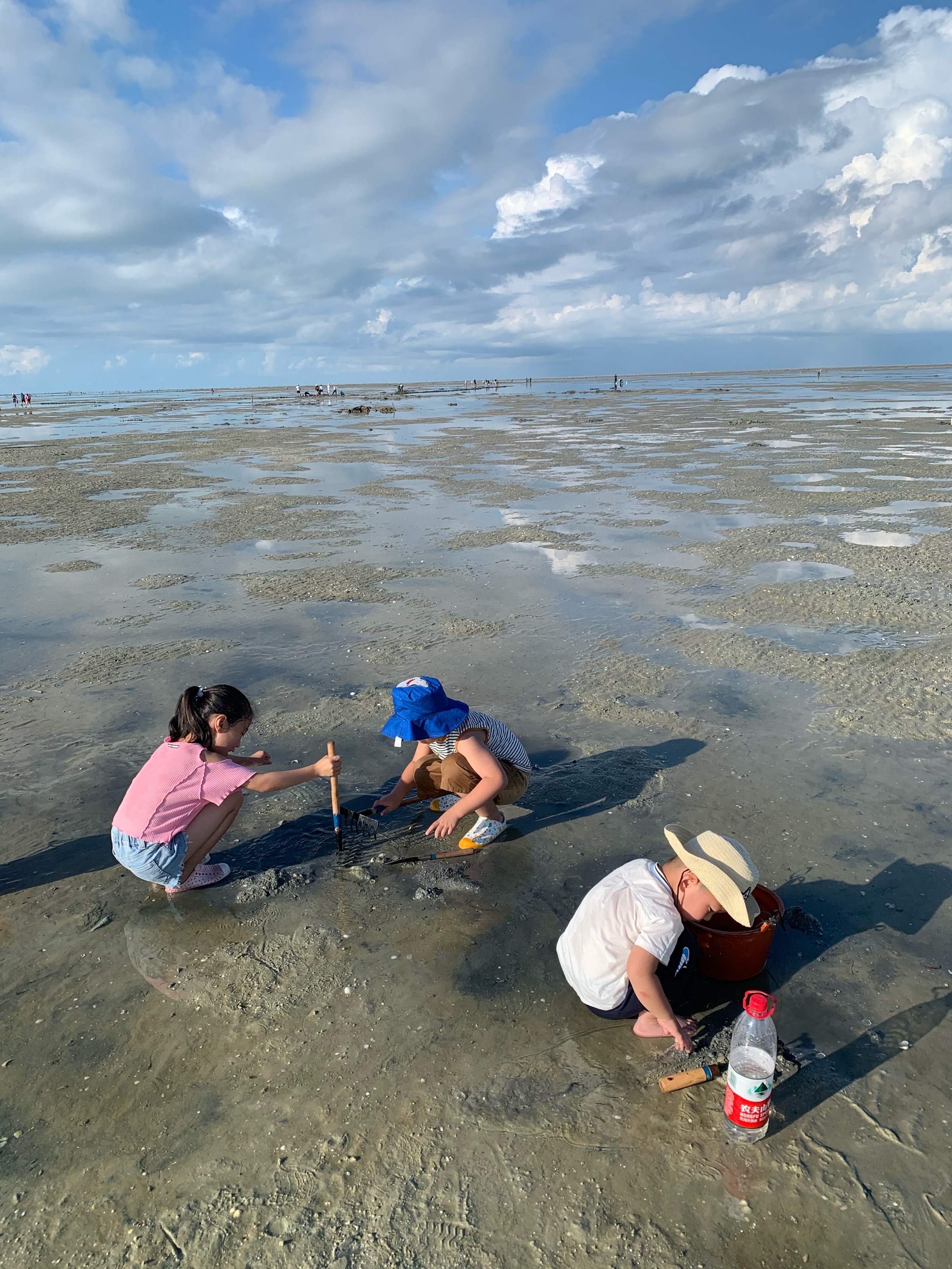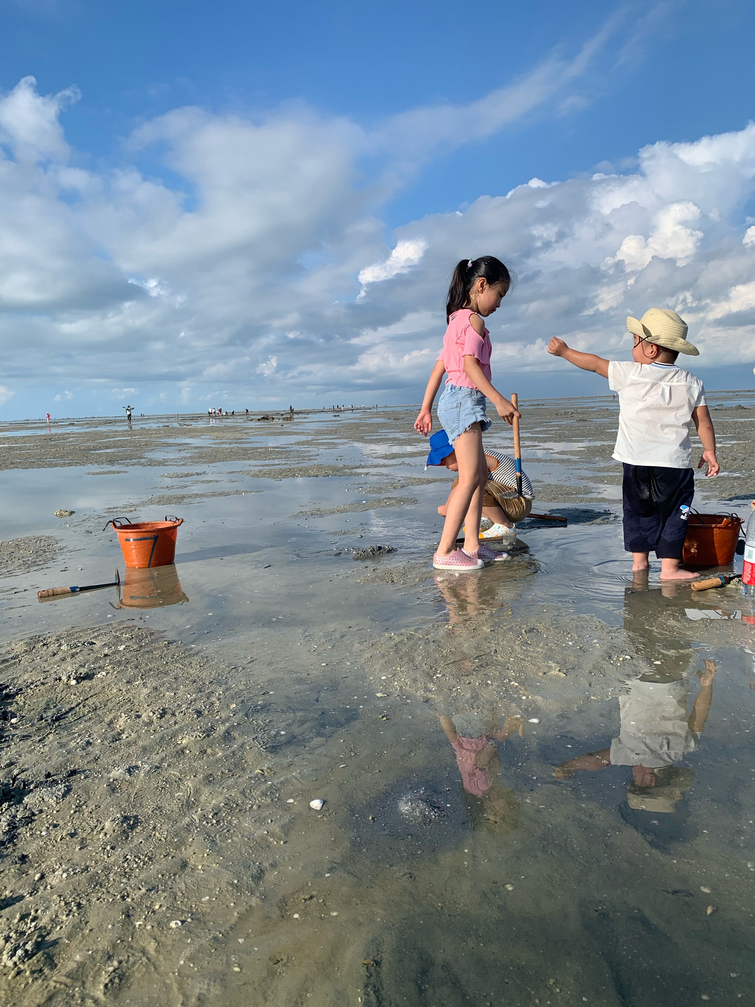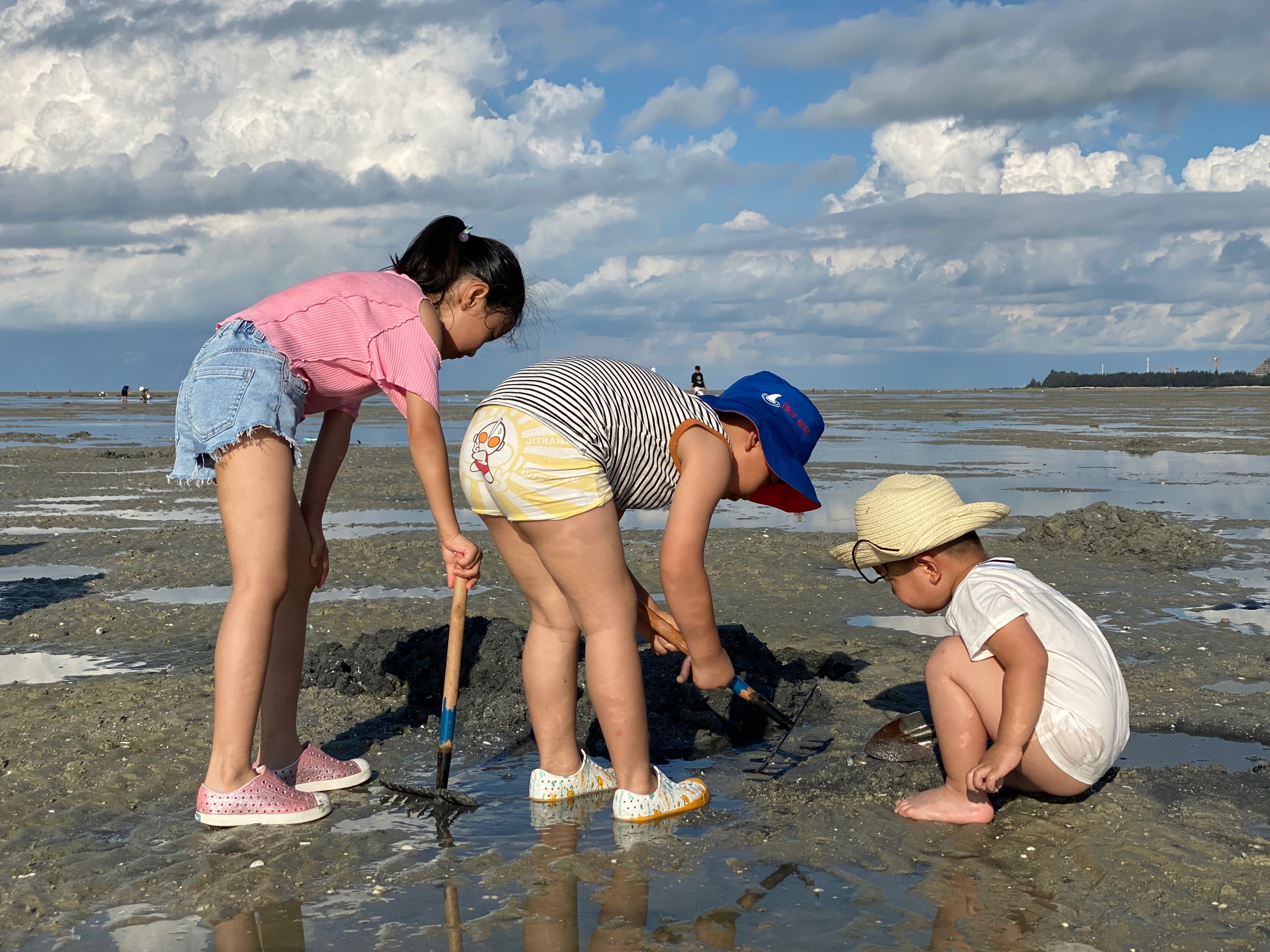 三个小朋友第一次赶海,刚开始的时候特别兴奋