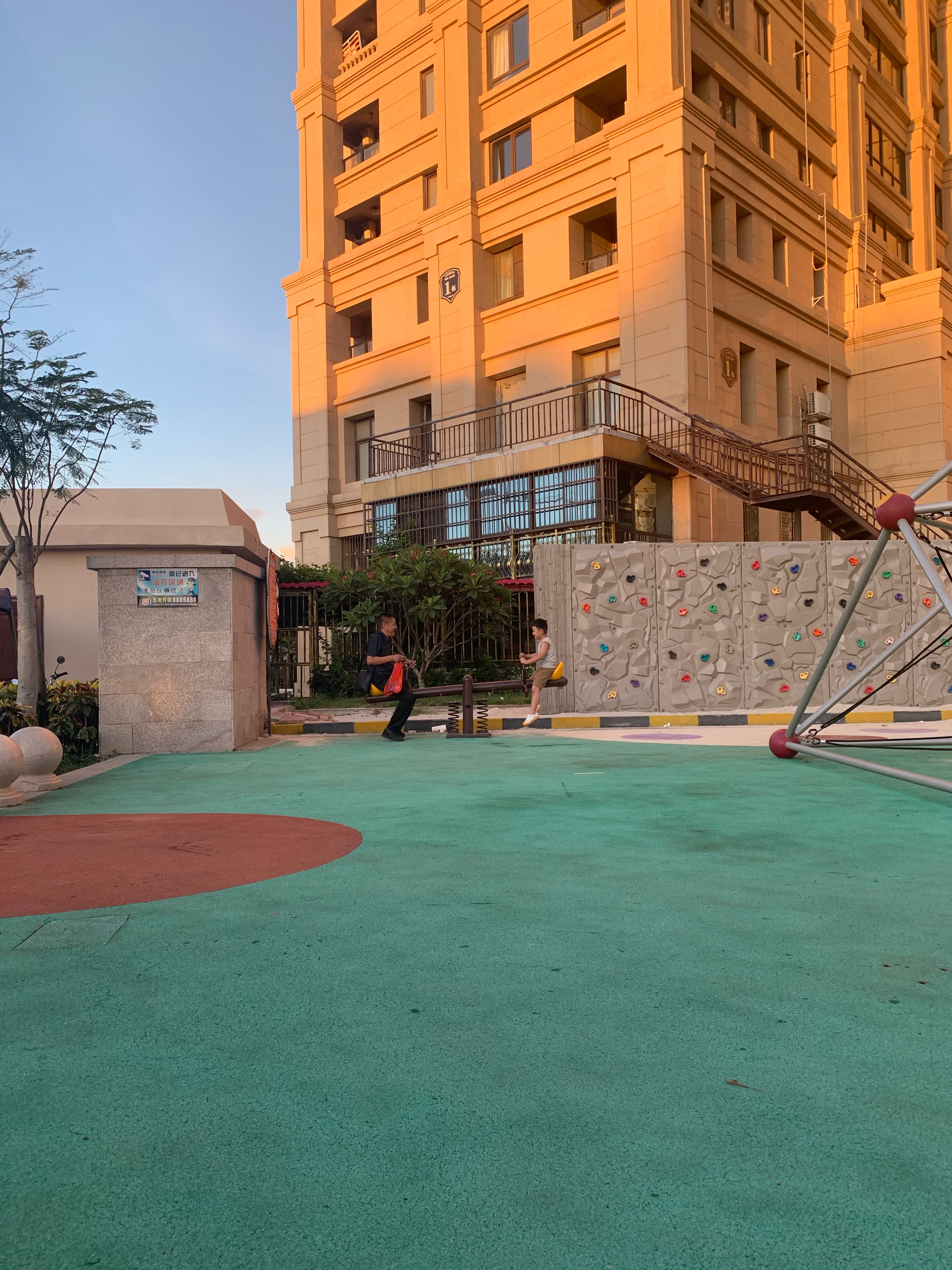 乐乐看到跷跷板非要爷爷陪着玩