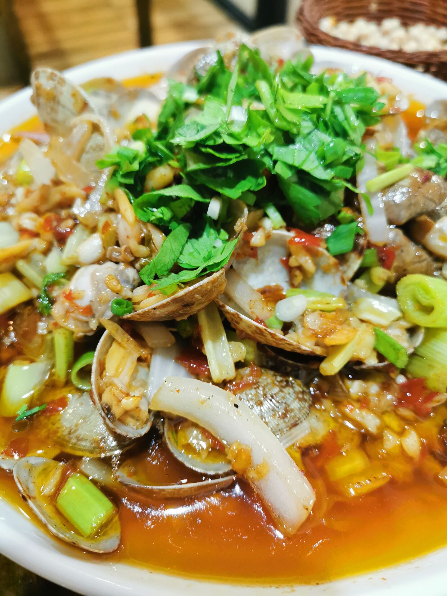 张公桥北拐过去的里仁街上的雷记烤鱼,都是一个个小门店组成的店堂。点好的套餐感觉是有啥菜上啥菜,反着来,先上解油的拍黄瓜、玉米粑,蒜香花甲味道不错,油汤也可以蘸着吃,不油不辣,香味足。烤鱼还不错,就是鱼有点小了,除了大大的鱼头,没有多少肉肉。玉米苞叶包着的玉米粑有很浓郁的玉米纯香。香甜绿豆南瓜汤是叫了服务员才上的,南瓜是南瓜,绿豆是绿豆,有些过于甜了,砂罐装着也不容易凉。
