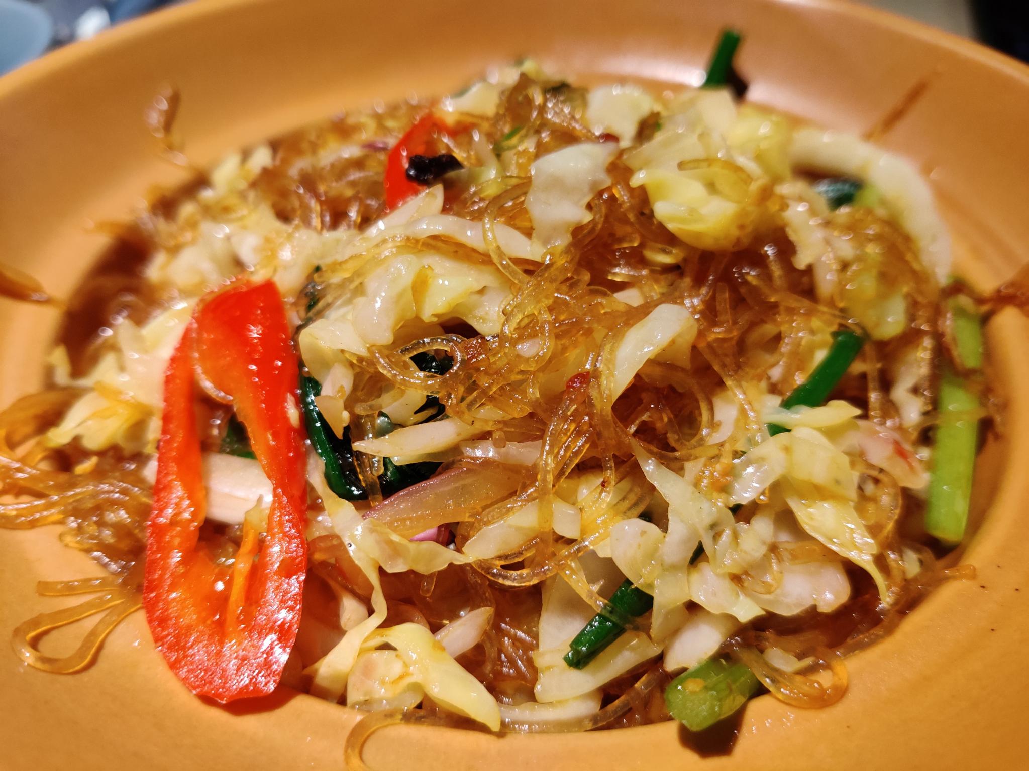 【素菜春卷】挺脆的,点酱酸酸甜甜挺好吃。【椰菜粉丝煲】不会油腻,挺香,粉丝好吃