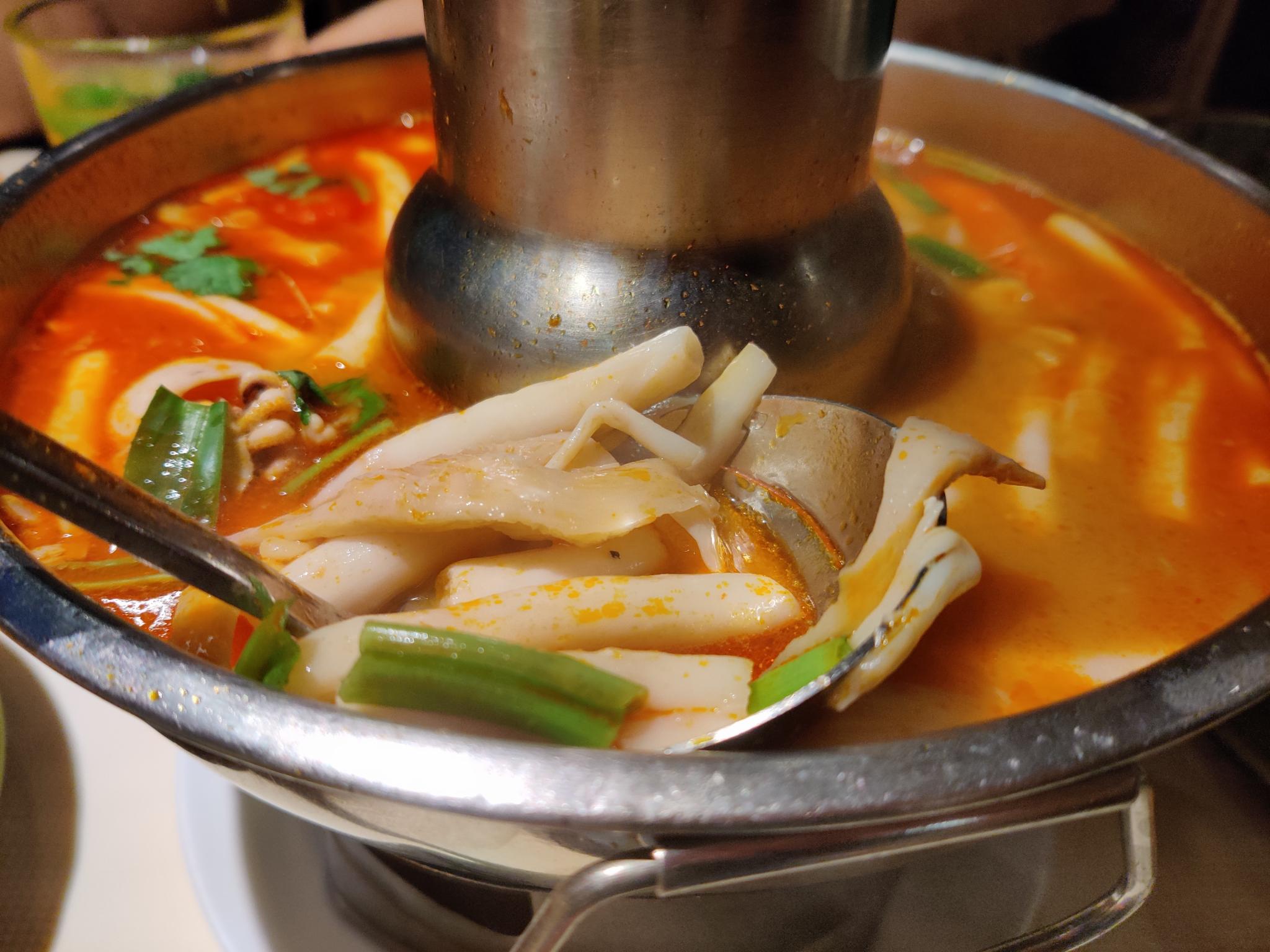 【冬阴功汤】不会很辣,料挺多,味道适中,勺子太大了,好难用