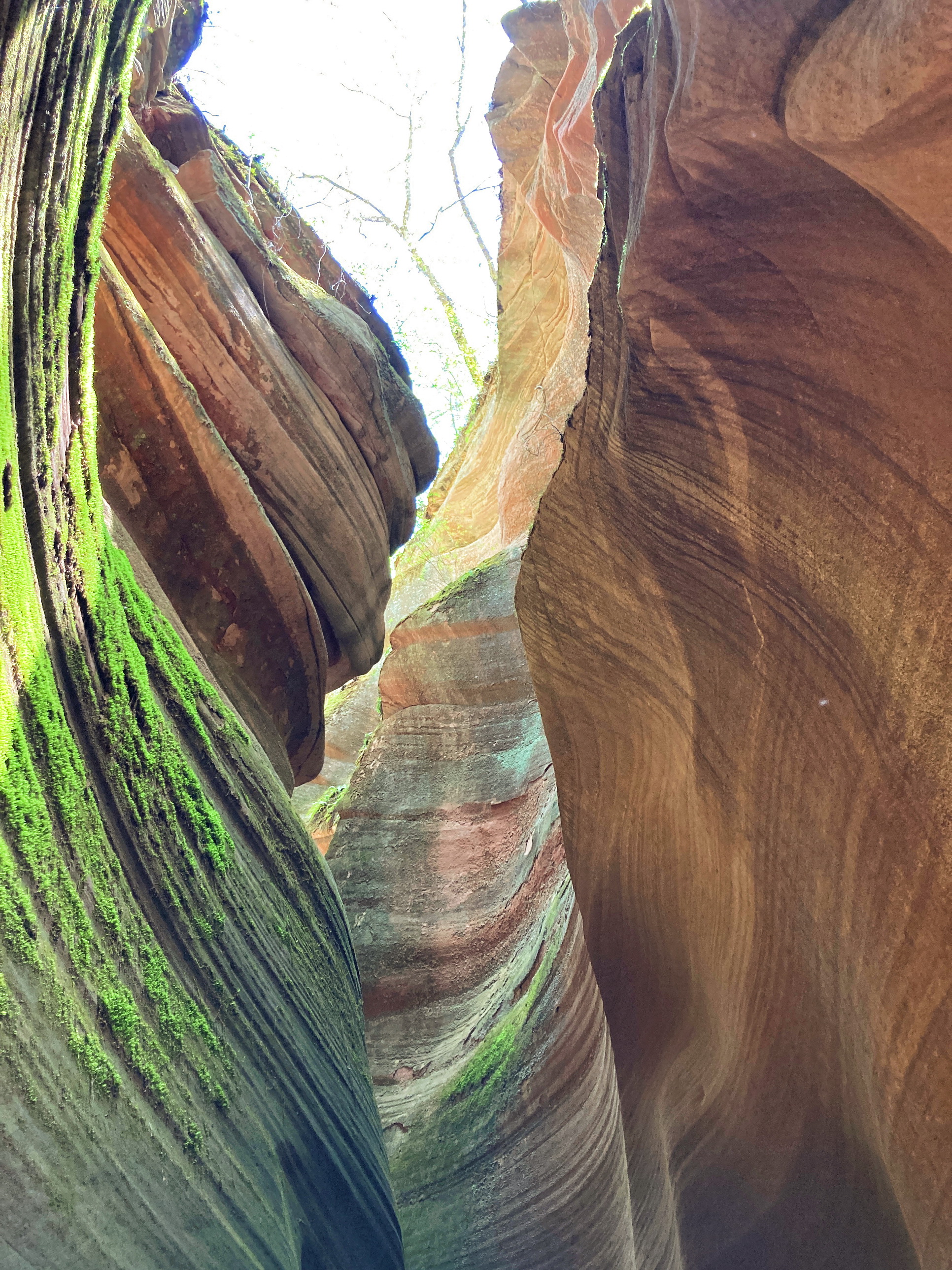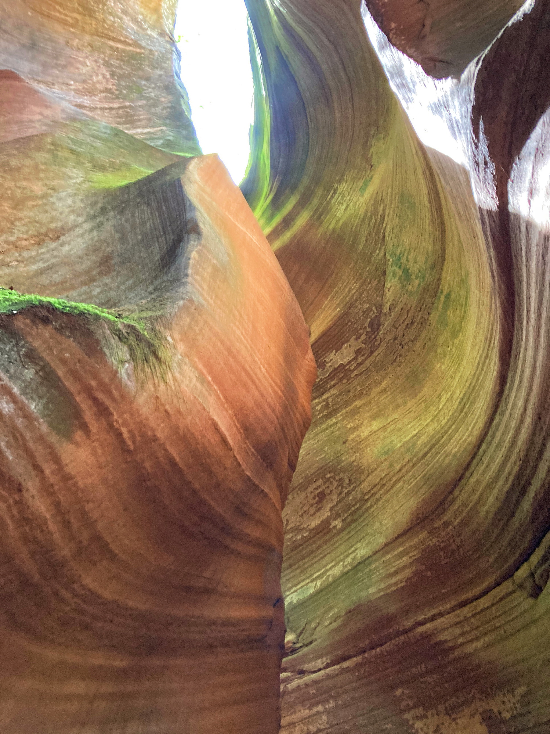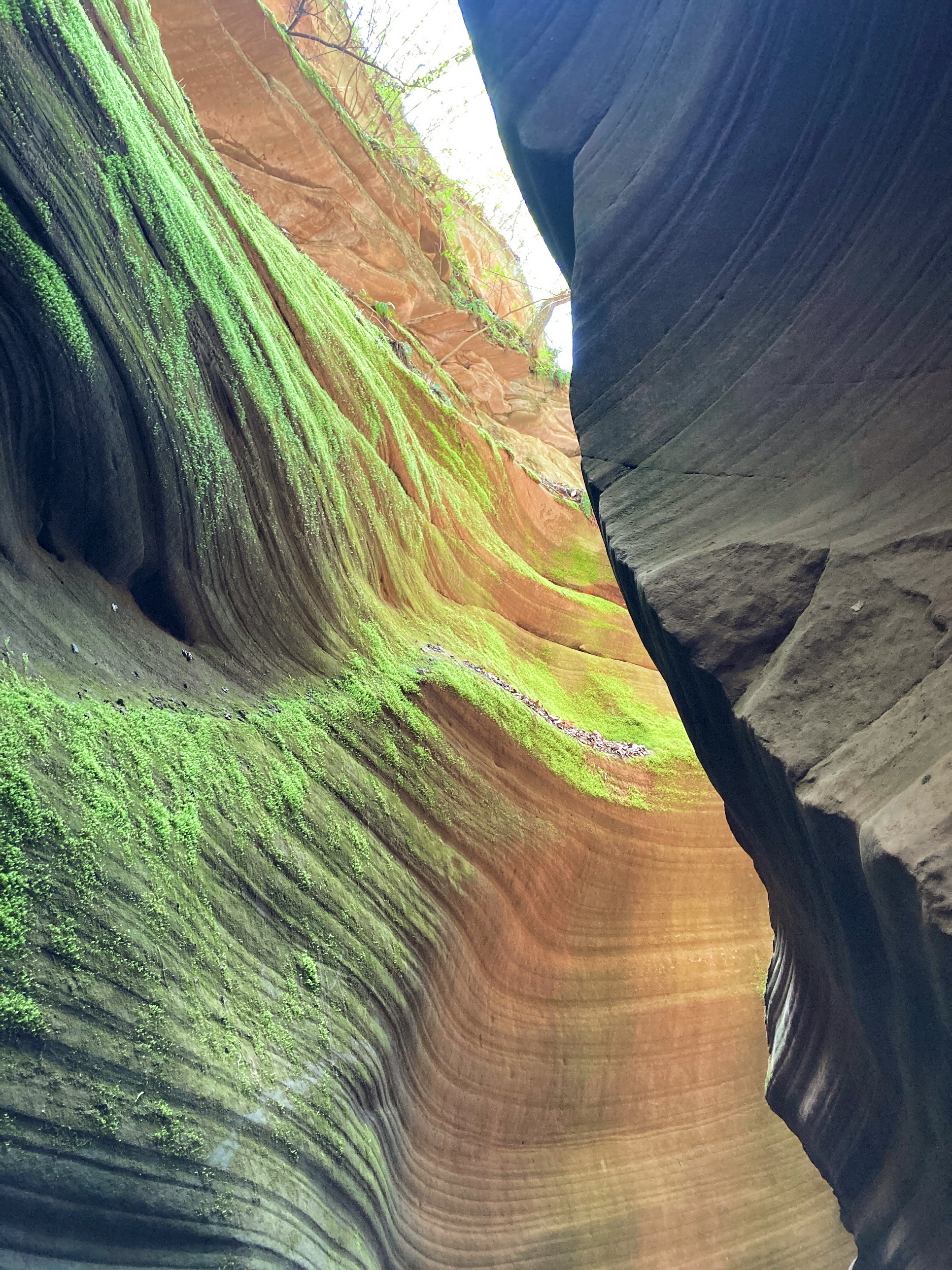俗称陕北羚羊谷,2017年后开始逐渐火爆,成为小有名气的网红点。峡谷主要是由雨水长期冲刷形成,不同于羚羊谷的干燥,这里比较湿润,除了在阳光照射下能显示的黄色、橘红色系,在青苔的帮助下,还加上了绿色系的点缀,色彩更加斑斓。整个景区其实是7个峡谷组成,但目前只开放了3个,还是没有完全开发完毕。