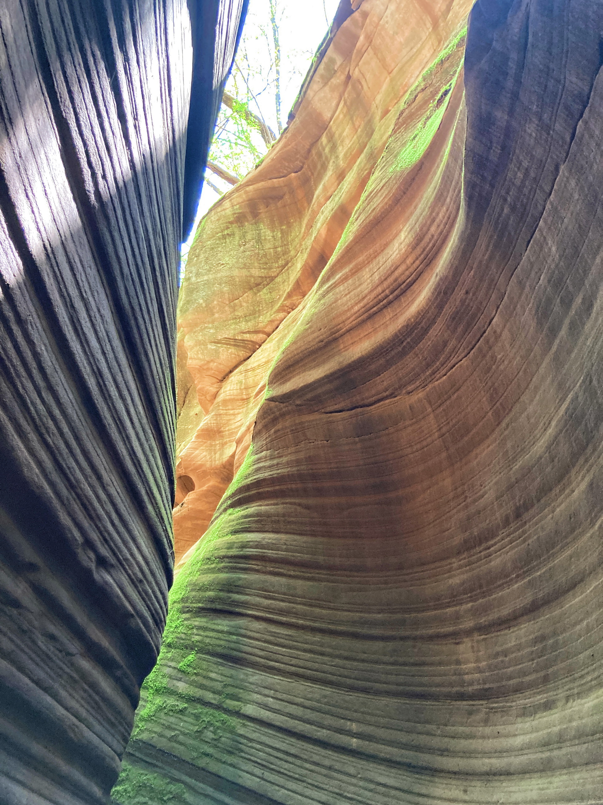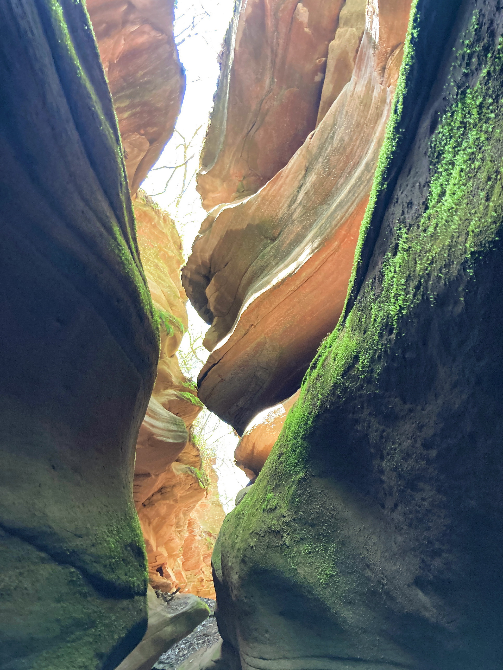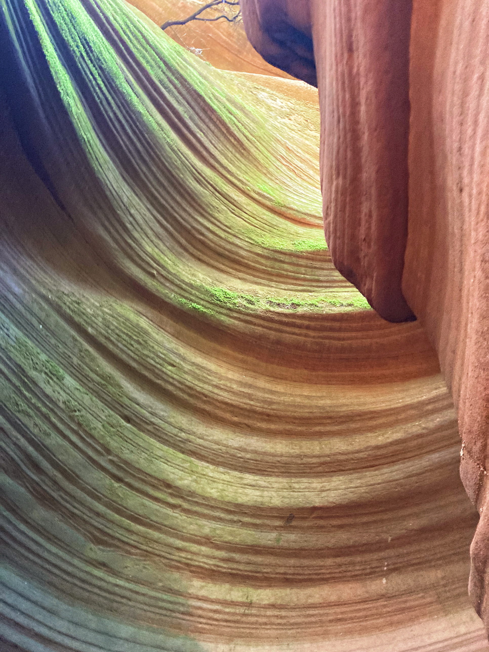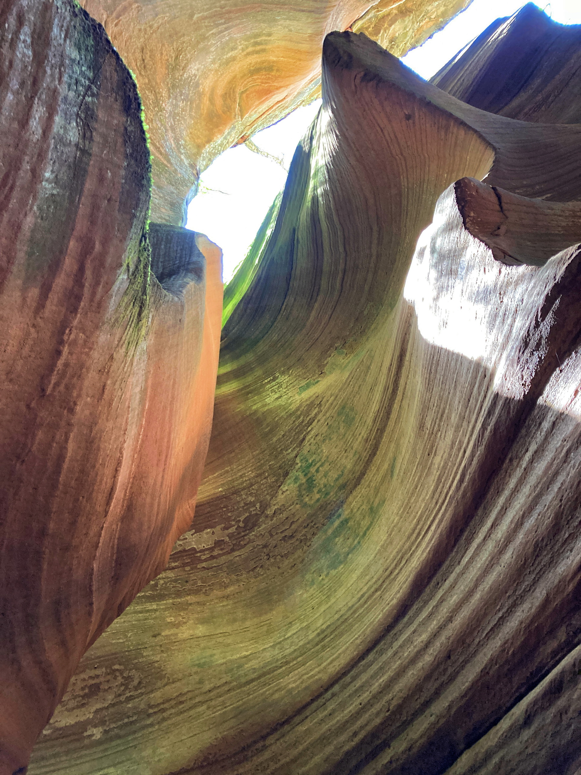 俗称陕北羚羊谷,2017年后开始逐渐火爆,成为小有名气的网红点。峡谷主要是由雨水长期冲刷形成,不同于羚羊谷的干燥,这里比较湿润,除了在阳光照射下能显示的黄色、橘红色系,在青苔的帮助下,还加上了绿色系的点缀,色彩更加斑斓。整个景区其实是7个峡谷组成,但目前只开放了3个,还是没有完全开发完毕。