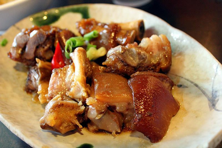 在成都有担担面,在台南有担仔面,不知道两者之间有没有什么客观的联系,在台南最出名的小吃也就是担仔面,大街上琳琅满目的小吃店大部分都有担仔面可以吃到。我们直径走进一家店,点了好多小吃,很多我也都忘记名字了,记得最好吃的一个就是这款卤猪脚,油而不腻 软硬适中 非常入味 到现在都还很怀念。。