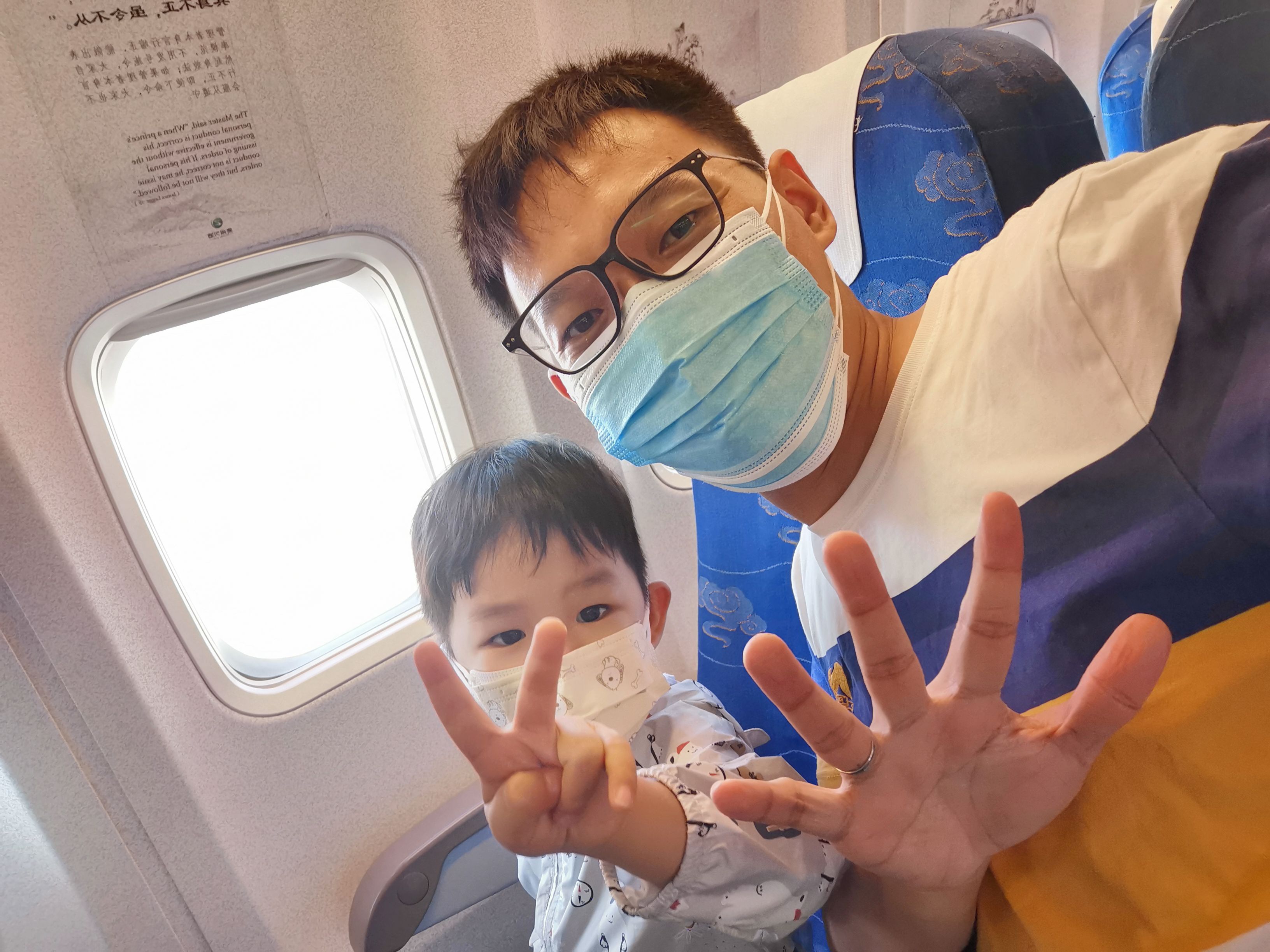 我和老二坐在一起,这也是他第一次坐✈️,替他开心😁