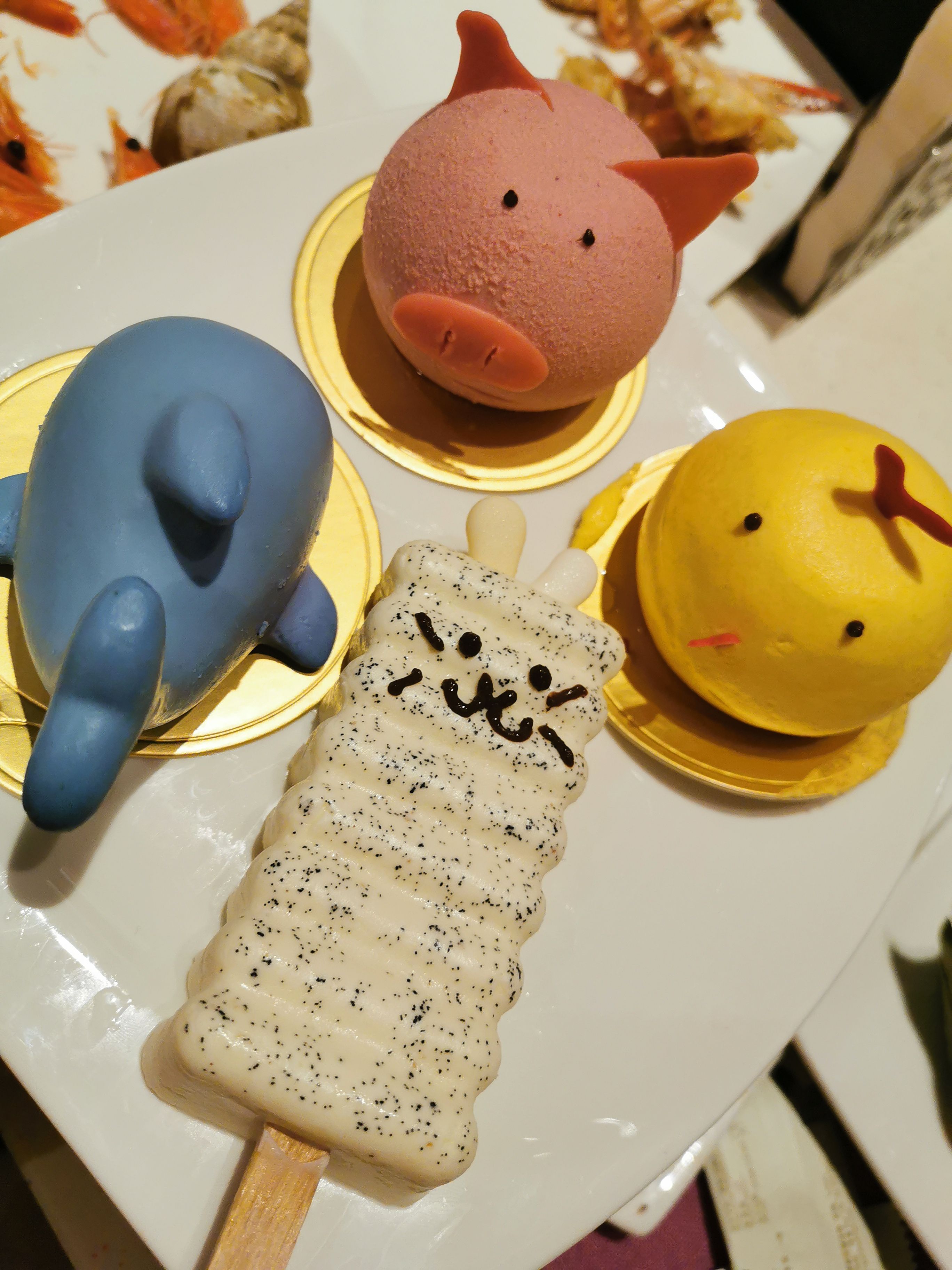 晚上直接吃自助餐,因为7点30要看大马戏,赶紧把去水世界玩累睡着的俩娃叫起来,赶场自助餐。自助餐比较一般,但是蛋糕看起来还是不错滴,😁