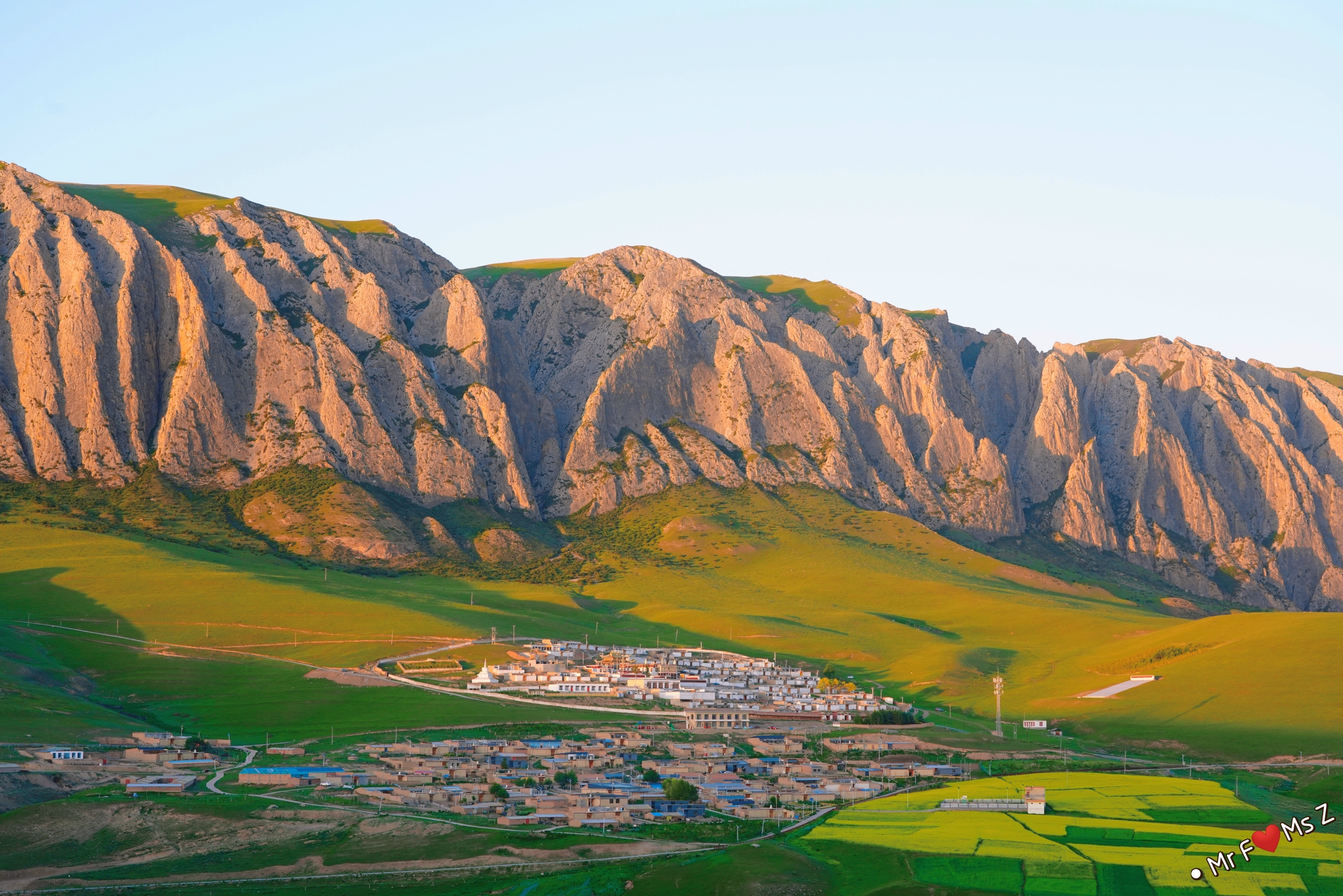 导航输入“夏河甘加癿石秘境”,你会有意想不到的收获。这儿既是一处住宿的地方,也是一个位置极佳的观景点,可以将远处整个白石崖和底下的村落、油菜花田一网打尽。