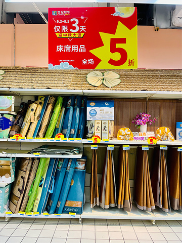 CJ和小熊熊一起玩儿2021-09-04世纪联华中秋节大促中秋节快到了,偶然路过这里,发现世纪联华正在进行三天的迎中秋大促活动,进口食品(特别是罐装啤酒)、冰淇淋、夏季的床席用品、洗护用品等折扣较大。 这里的购物环境始终一般,出口处有自助结账的机器,对周边的居民来说,是个方便购物的去处。