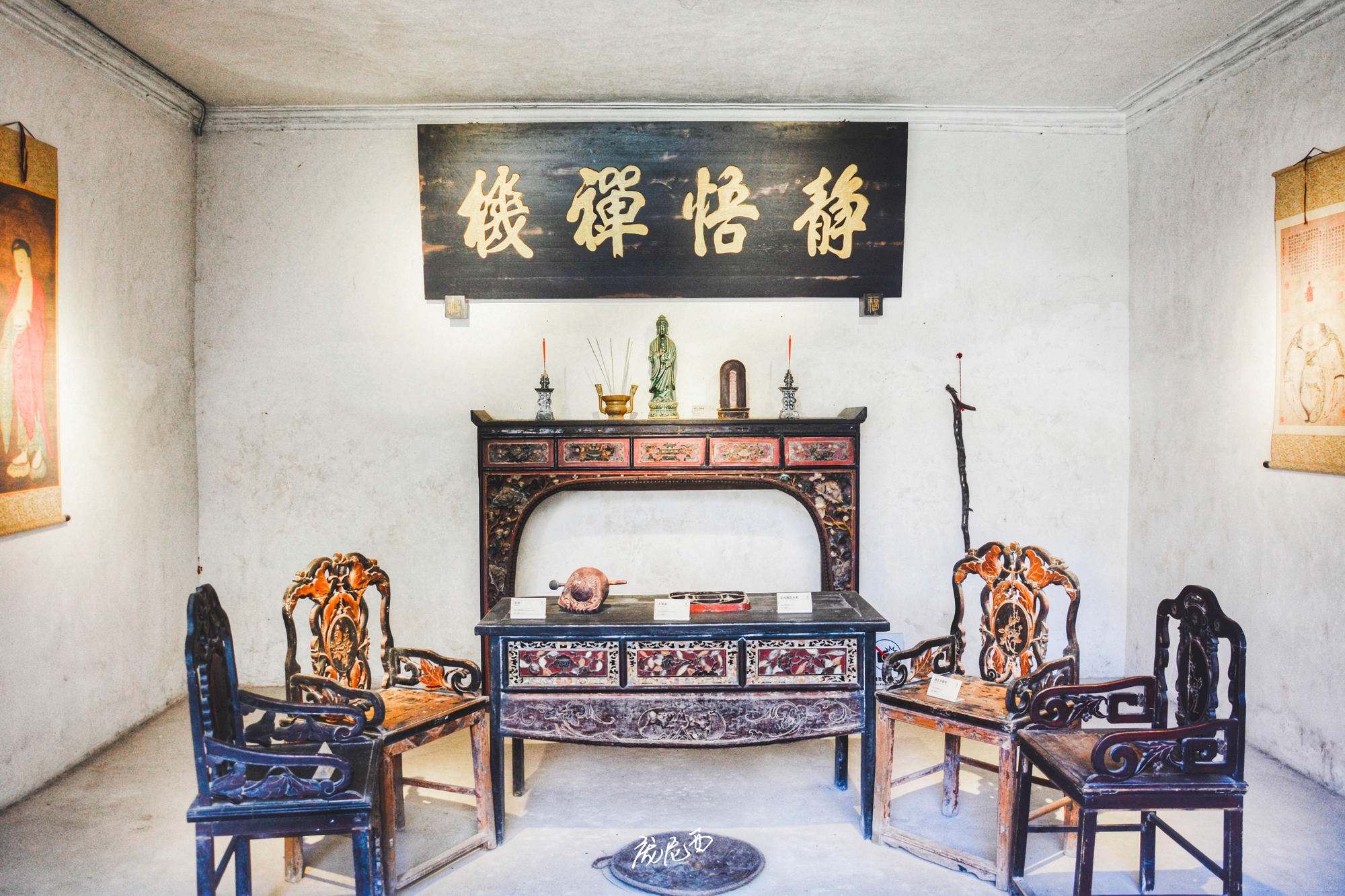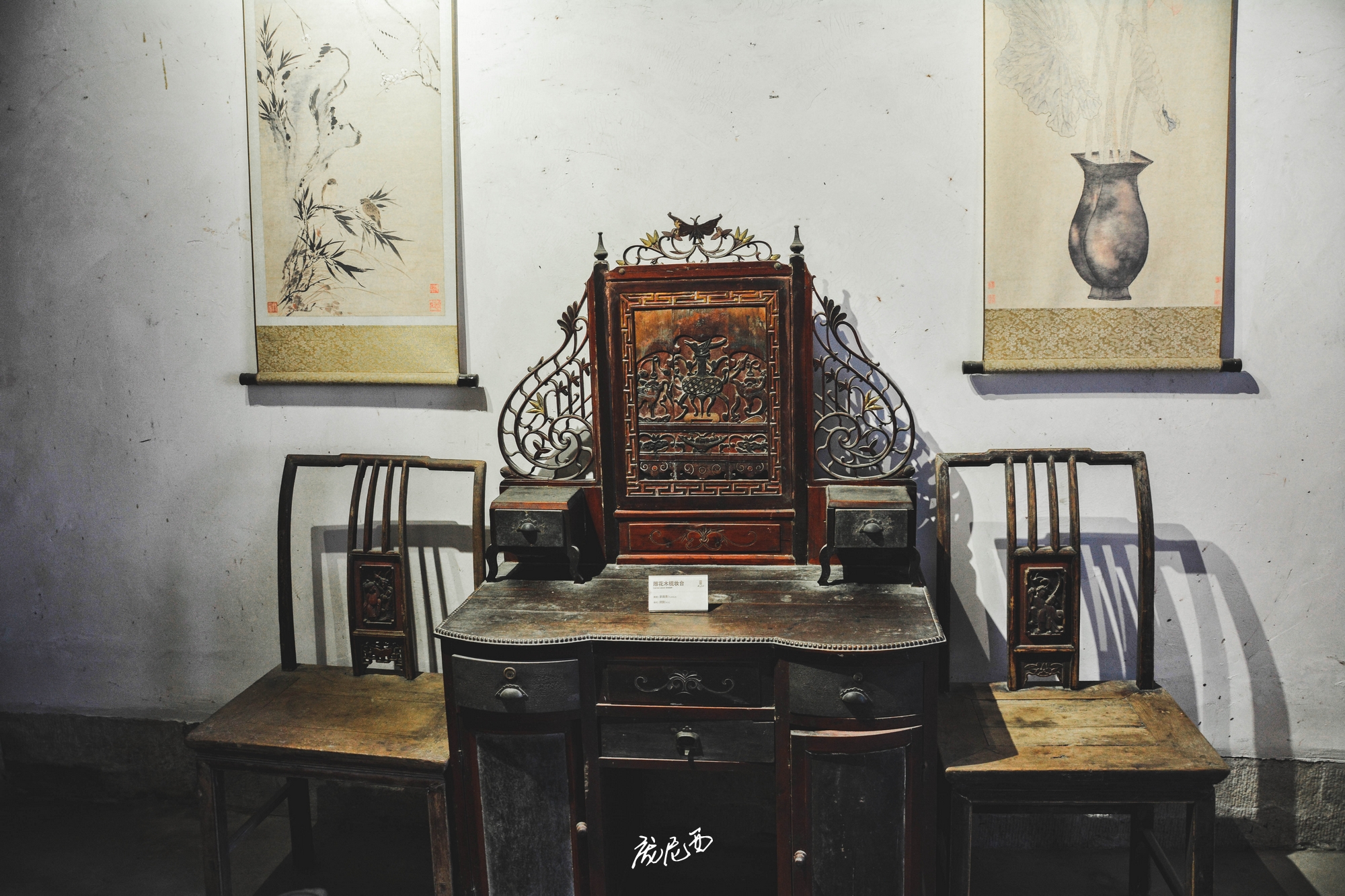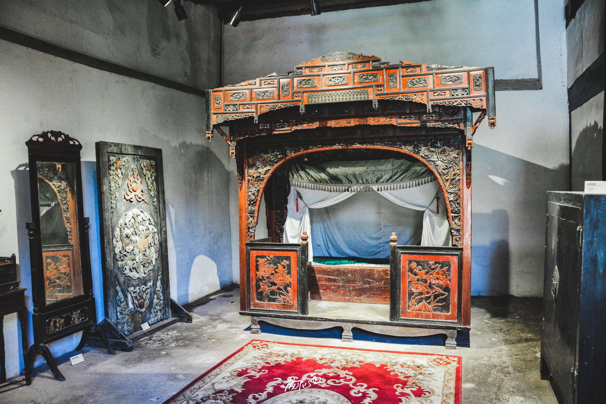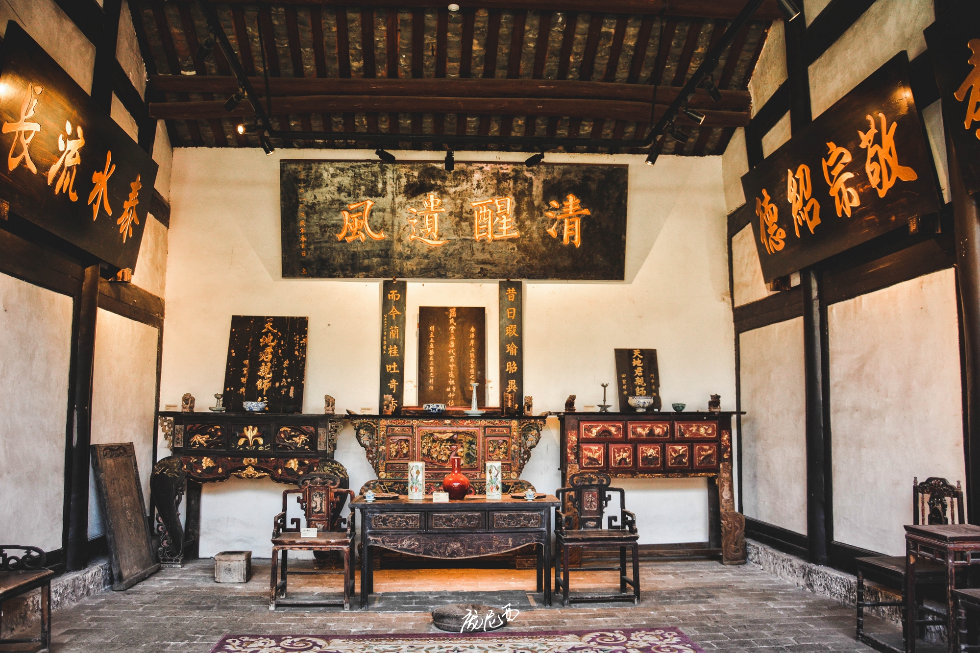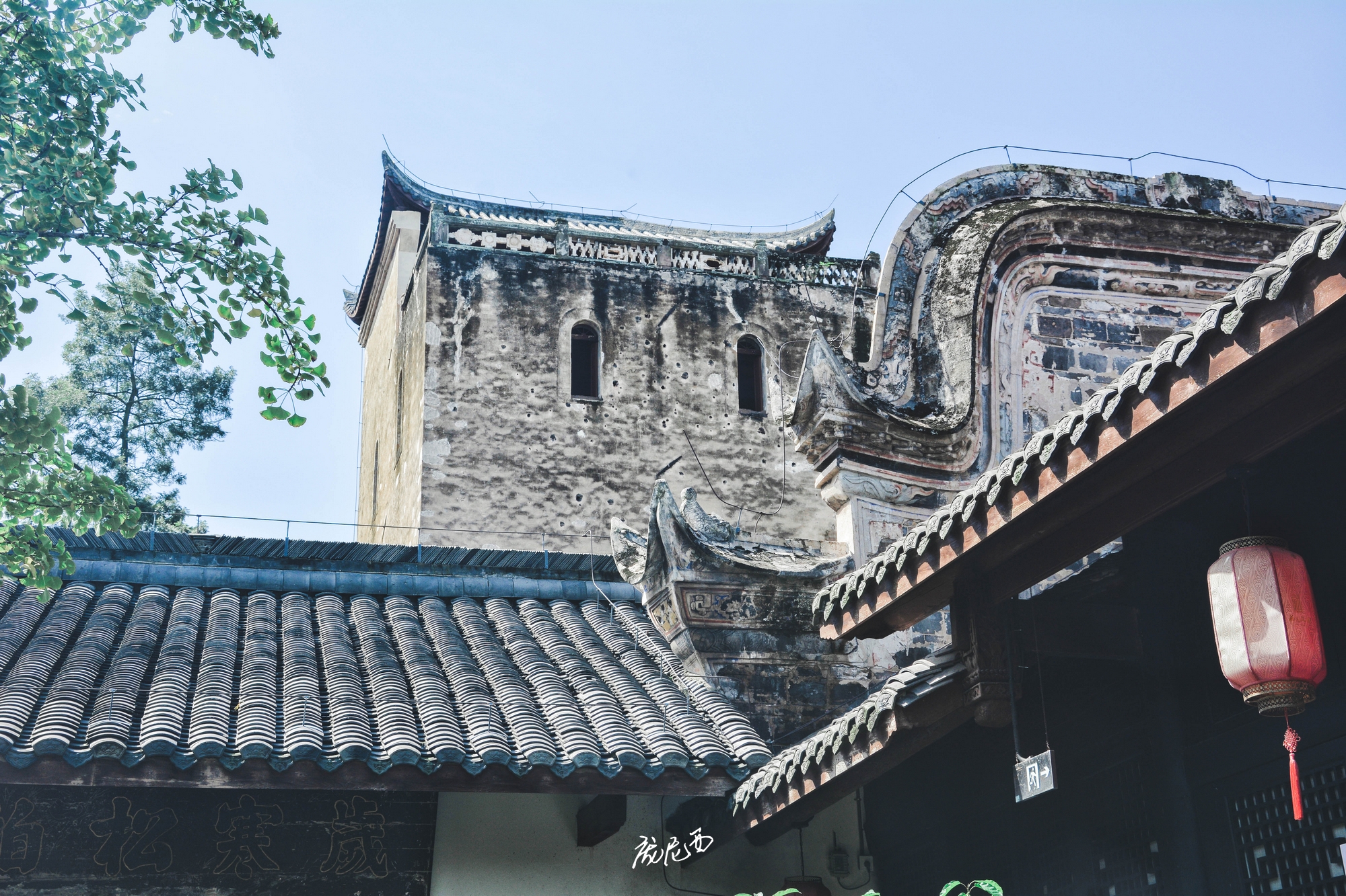 屈氏庄园的装饰细节也特别有意思,无论是砖雕、木雕、石雕,还是泥塑、绘画等,都有种低调的华丽之感,又丰富又精美,但是一点也不会让人觉得特别抢眼和繁琐。个人最喜欢的还是庄园内的戏台,中西文化结合的刚刚好:单看窗户,下方由全部方形组成,窗顶部则既有拱圆形,也有塔尖形,犹如一缕异域来风。