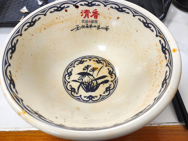 不错的一家快餐店,四颗星。 五彩城派出所门前,靠道边,清香拉面,现在叫清香优品面馆,号称要做无拉面剂的良心面,这么说来,好像大多数的拉面店都是添了拉面剂的哈。 店铺干净明亮,整洁有序,不像有些粑粑馆脏兮兮的,对于一个小店来说,算是非常干净啦,干净程度五颗星。 店主非常热爱生活,不大的一家拉面店里,还专门拿出一张桌子,养了满满一桌多肉。 我一直认为,对生活有爱的人,做事一定也会认真,所以对他说的,用心选好麦,用心选好面,用心熬好汤,我是相信了八成的。 判断真假,最好的办法就是尝尝他家最简单的面,没有那么多乱八七糟的调味干扰,选一碗葱花面品尝。 他家的面不是常见的那种拉面,而是有点儿像钢丝面那种的,细细的,半透明状,面条劲道爽弹,面汤清爽,不说有多惊艳,但是感觉比较纯净,没有很多乱七八糟的东西。 空口吃是一种感受,加了自己喜欢的调料,拌成麻辣面,又是一种滋味。 五分钟,一碗面下肚,光盘是对厨师最好的尊重。 不错的一家面馆,干净,整洁,健康,快餐好选择。