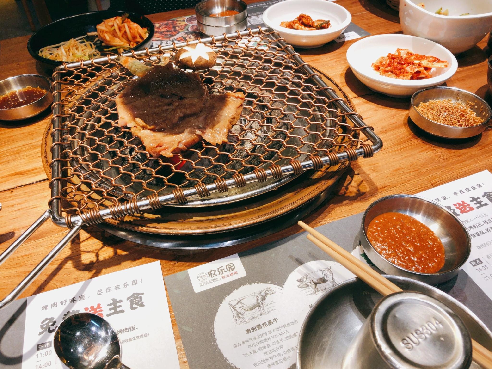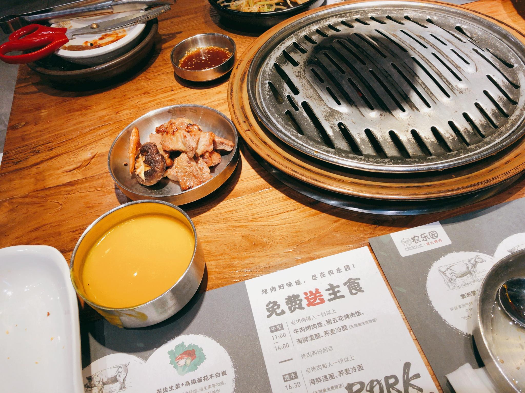 免费的南瓜粥一如既往的好吃,但是说点一人一份烤肉无限可以添加的面,怎么只能一人一份呢,这个有点奇怪喽,我是觉得吧,网红连锁店。应该大气些。有人帮忙烤肉,这个还是很不错的。关键是中午去的吧。