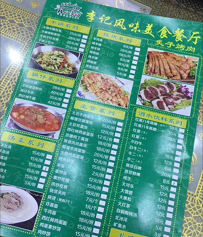 第N次来李记 后海边上一家比较实惠的店 这次比往常人多了不少 排号等了好久才有空桌 可能是因为旁边的两家兄弟店都在装修。 炙子烤肉每次来必点 肉很嫩很入味 再配上香菜洋葱 就连一向不吃香菜的我都觉得里面的香菜很好吃 再来上两个烧饼 把肉往里一夹 好吃极了😋。 这次还要了京酱肉丝 是鸡肉做的 配上豆腐皮卷着吃 也很赞。再来上一盘老醋花生米 喝上一瓶啤酒[啤酒] [色][色]
