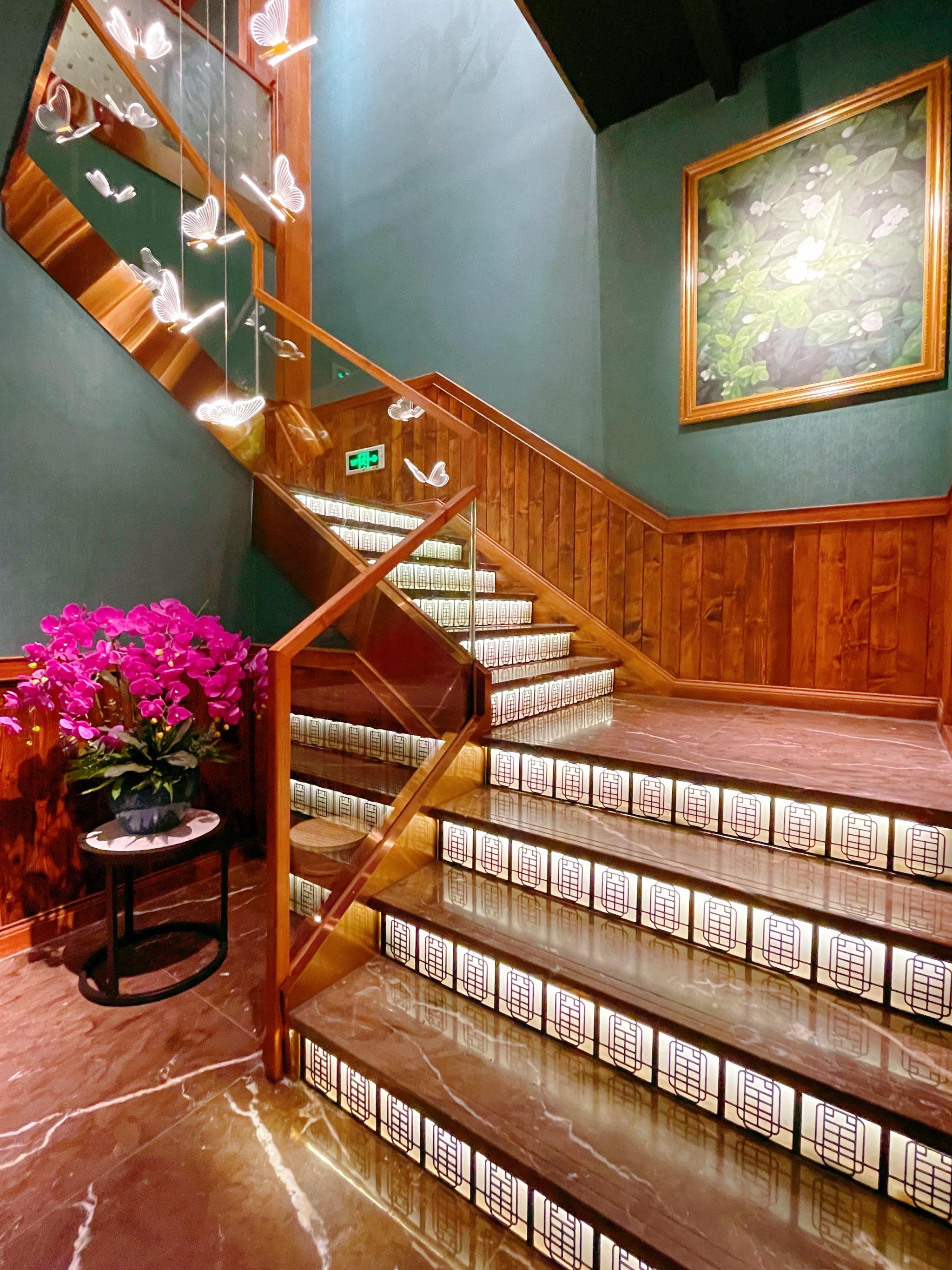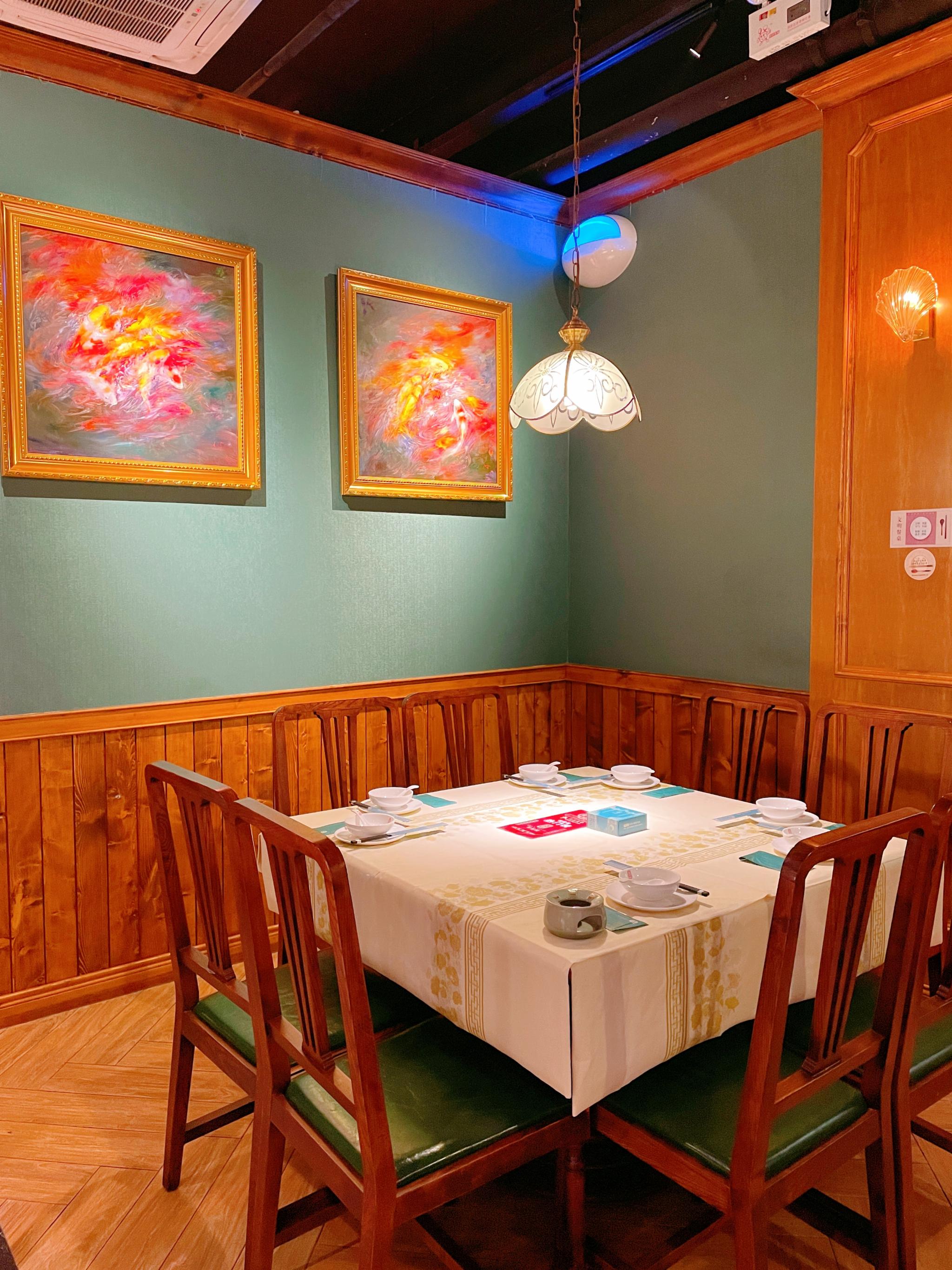 当你步入餐厅时,店内环境又是复古民国风格,琉璃吊灯,中式彩窗,胡桃色木质桌椅,仿佛一瞬间穿越时空回到了民国最美好的时期!