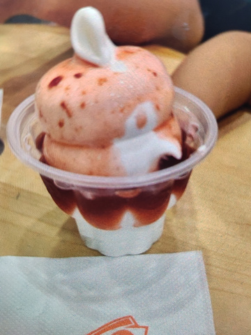 冰激凌圣代口感浓厚,甜而不腻,草莓果酱也很好吃。服务员热情,态度很好,很贴心的给了纸巾