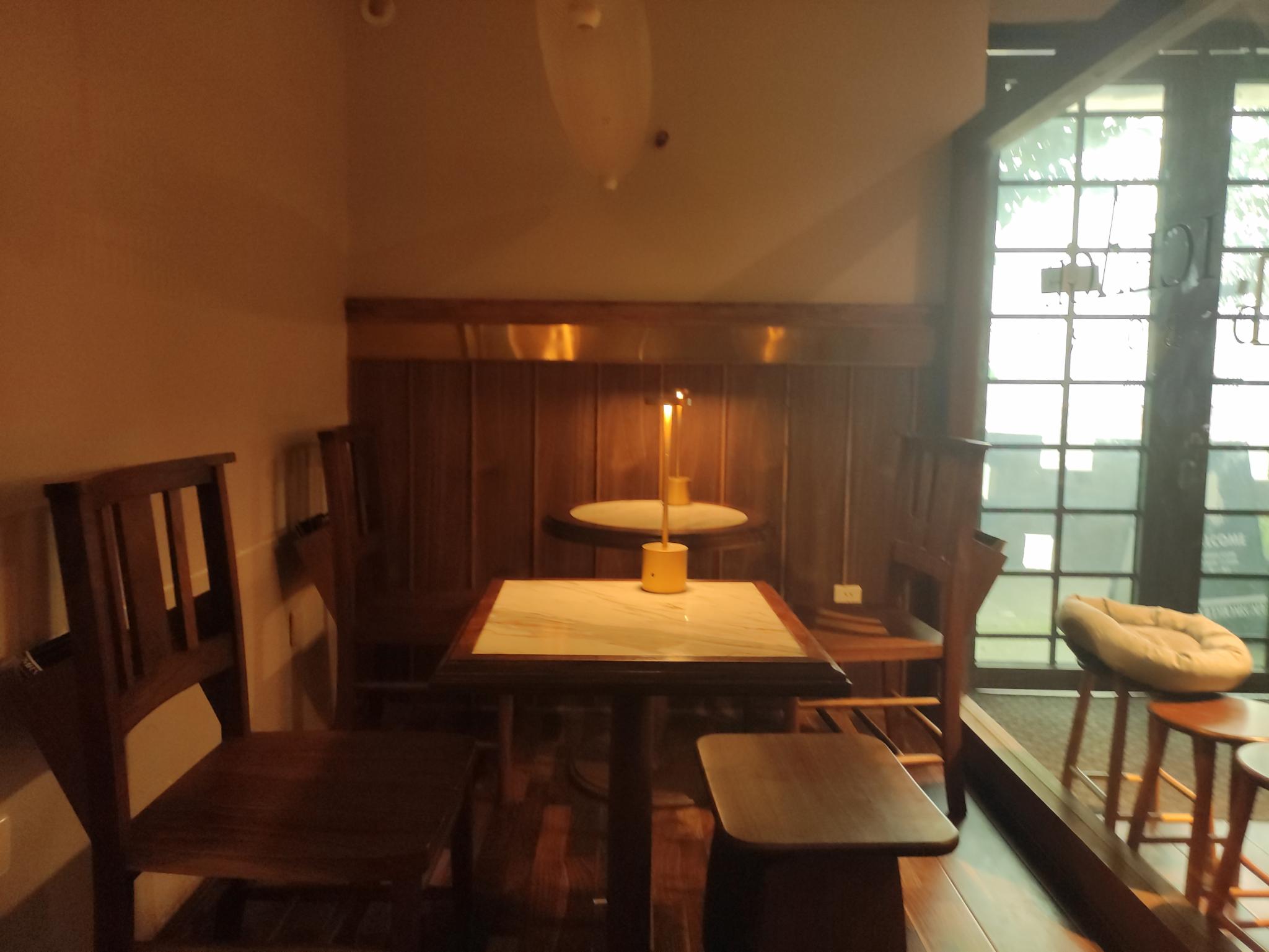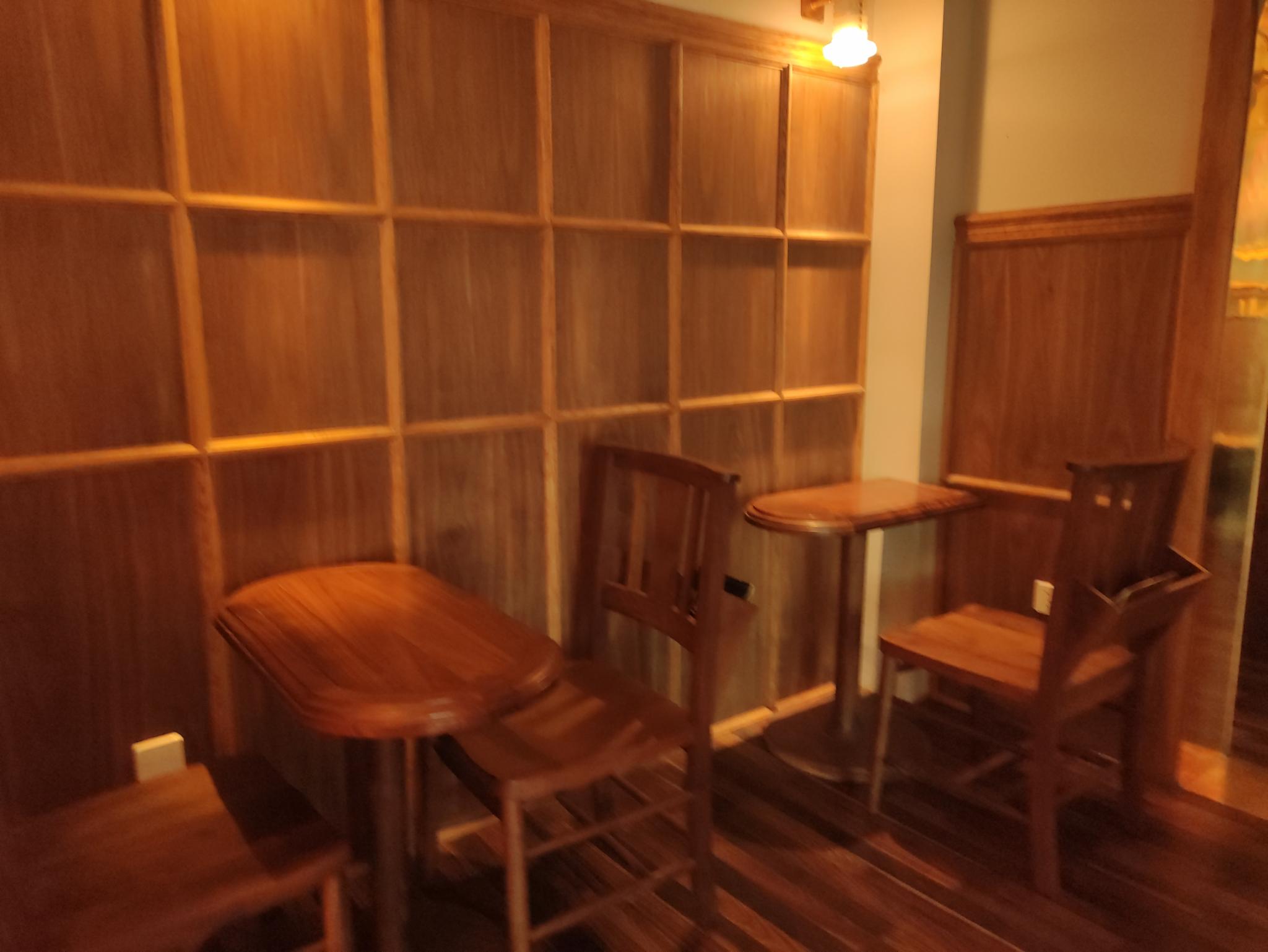 室内微弱的灯光加上店里的装修风格,很适合拍美式照片。每个桌椅旁边都有充电插口,充电很方便