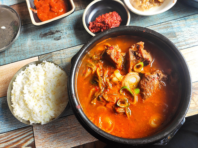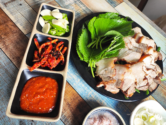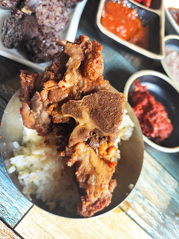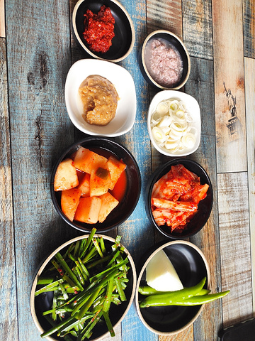 不错的一家粑粑馆,推荐。 朋友推荐来的一家韩餐馆子,就在翠竹小区居民区里边,也就是红梅市场对面那个院里,不要犹豫,进了大门往里走就是了,错不了。 真正的粑粑馆,连个像样的门脸都没有,在外边看到的是厨房,进门需要从楼道里进,这是我见过的最因地制宜的粑粑馆之一了。 里边应该是一家人在忙活,很有家庭气息,不管是做饭,还是吃饭的环境,都充满了生活气息,很温暖。 点了几道招牌菜,都还不错。 脊骨汤看着红通通的,但是并不辣,喝完了暖和和的,里边还有大块的脊骨,骨头上还有不少肉,配上一份米饭和几道小菜,很实惠,适合一人食。 米肠很正宗,配的蘸料味道非常赞,直接把米肠的味道提升到了一个新的层次,好吃。 菜包肉也好吃,但是吃多了会有点儿腻,和哪种酱都很搭,配菜的苏子叶和生菜,可以单独全部要一样菜,很人性化。 送的小菜很多,但是吃了这些以外基本上也没肚子吃小菜了,就肉眼所见,韭菜上的有点儿多了,并且就是生韭菜大概拌拌就上,反正我是没法下口,希望可以稍微精致一点儿,样式丰富一点儿。 总结就是,不挑环境,不喝酒的话,过来专门吃顿饭是个不错的选择。