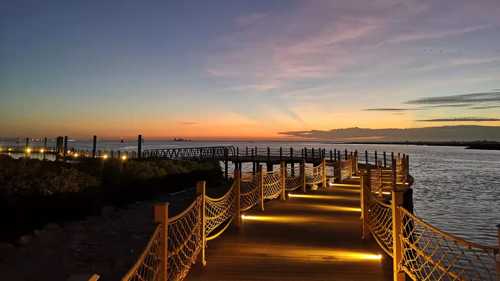 桐花木栈道拍最美的日落。亲海生态栈道,漫步氧吧赏海景风光;满朝节的景色。小推车特色小吃。白鹭成群