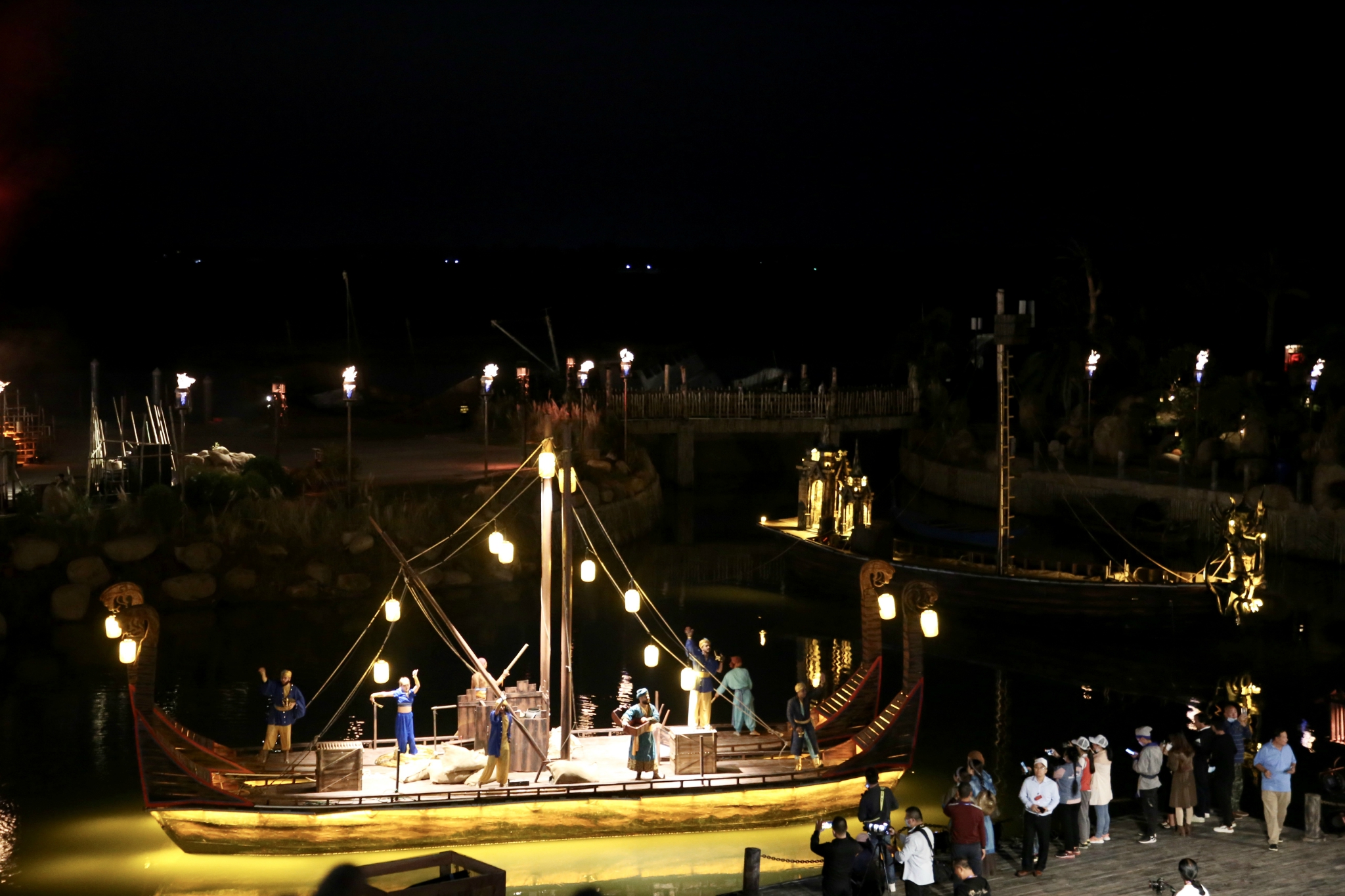 跟着我的脚步进入核心景区,全景交互式生活港体验沉浸式演艺,水与火之歌大型表演吧。