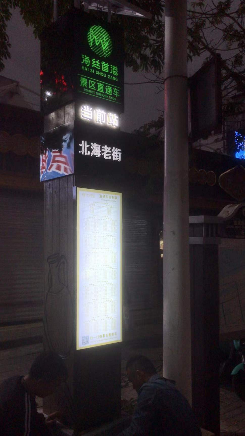 北海老街海丝首港直通车站牌,晚上才拍的站牌。