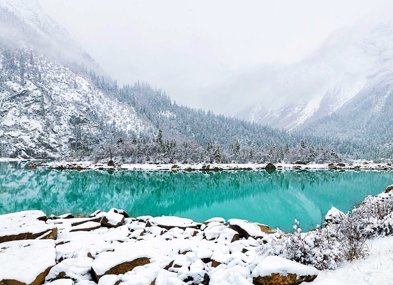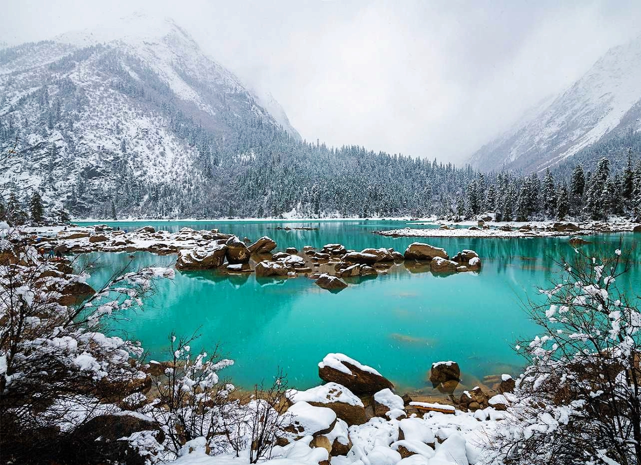 无论夏季你看过了多少风景,冬季的西藏是另一番景象。作为亚洲水塔,西藏的冰川数量和储量居全国前列。很多前往西藏自驾走川藏线的人,肯定知道然乌湖的美,因为然乌湖就在318国道边,这里一大片碧草如茵的草甸,和着碧蓝的湖水、白雪皑皑的雪峰,景色如诗如画。然乌湖分为上然乌湖和下然乌湖,上然乌湖位于然乌乡外一公里的地方,而在318国道上看到的是下然乌湖,这里四周雪山环绕,山顶终年积雪,多条瀑布从山涧中流下汇入湖中,滋润抚养着这片土地上的人们,走川藏线的人,通常会选择在然乌乡或湖边落脚歇息。