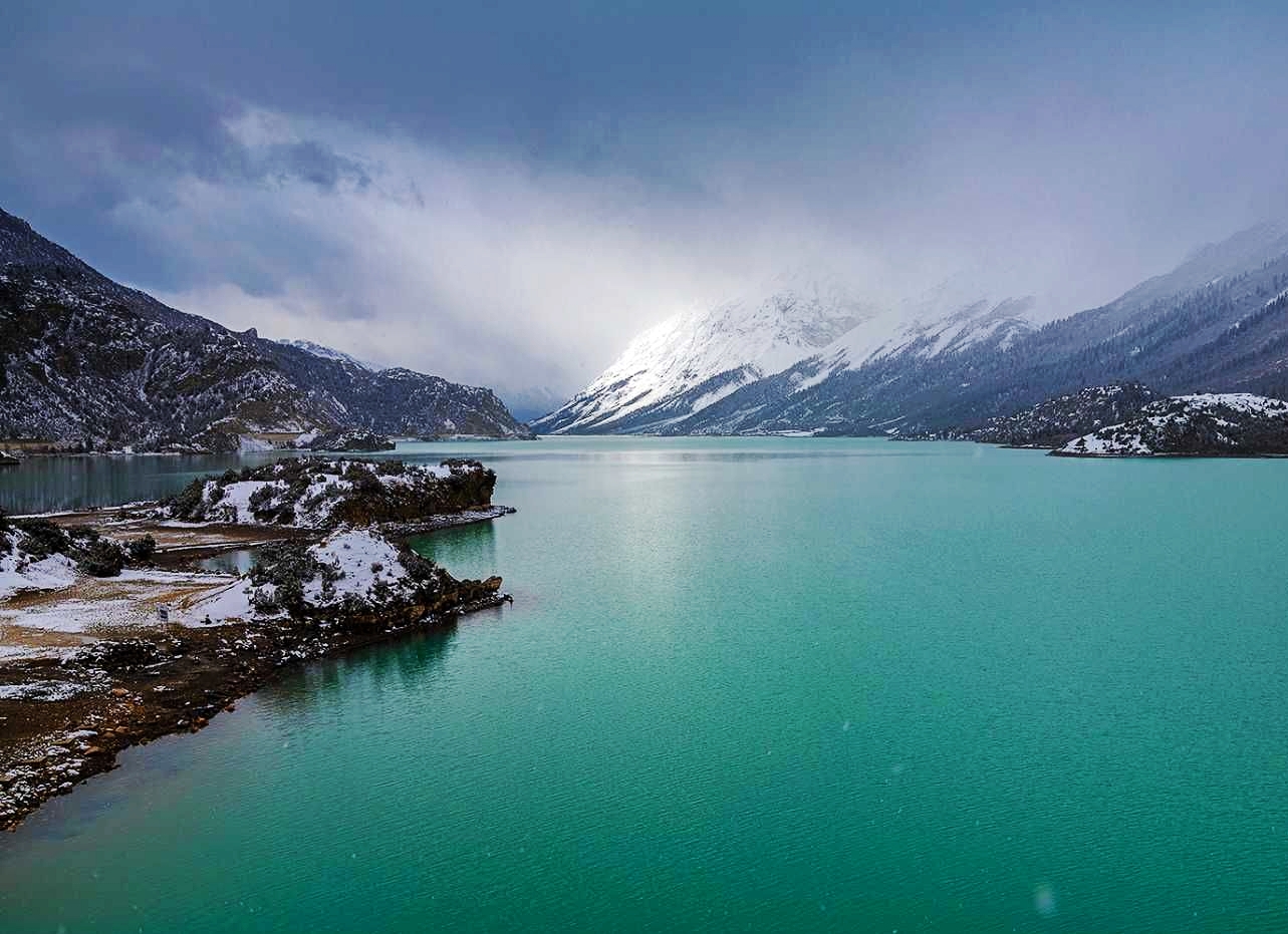 林芝往东三四百公里,是被群山绿影环抱,绵延二十多公里的然乌湖,藏东第一大湖,湖畔西南有岗日嘎布雪山,南有阿扎贡拉冰川,东北方向有伯舒拉岭,湖面湛蓝平静,如蓝宝石般镶嵌在藏东群山之中。它的形状就像是别致的发卡,夹在雪峰之间,公路之旁。然乌湖在藏语里是“山羊奶一样的湖”,每逢气温上升,其北面的古冰川冰雪融化,为然乌湖带来了丰富的水源,而冰川融水往往会带来许多杂质,在未经过时间沉淀,湖水会显得浑浊,如山羊奶一般。湖水的颜色一年四季随着季节变幻会有不同,有时候是浑浊的泥浆色,也有碧蓝色和青绿色的时候,不过湖水最美最清澈的时间,是每年的3-4月期间,也就是进入雨季前。