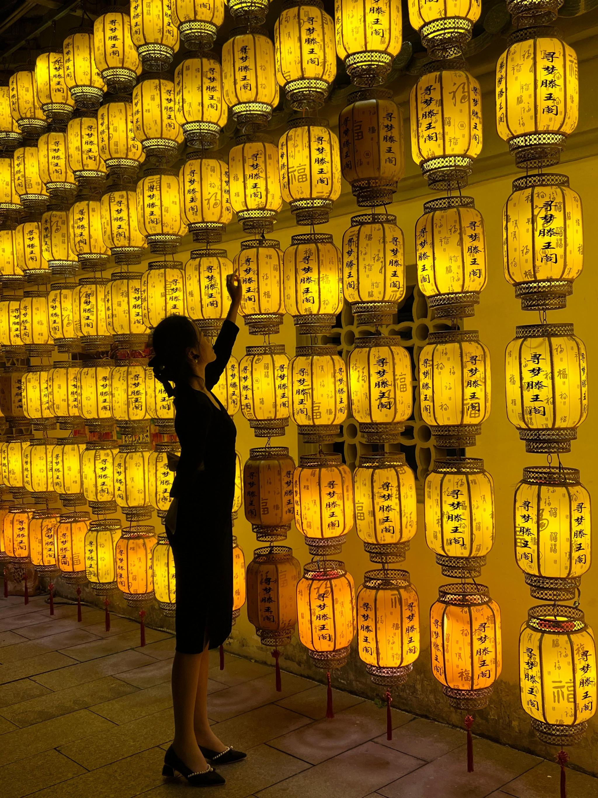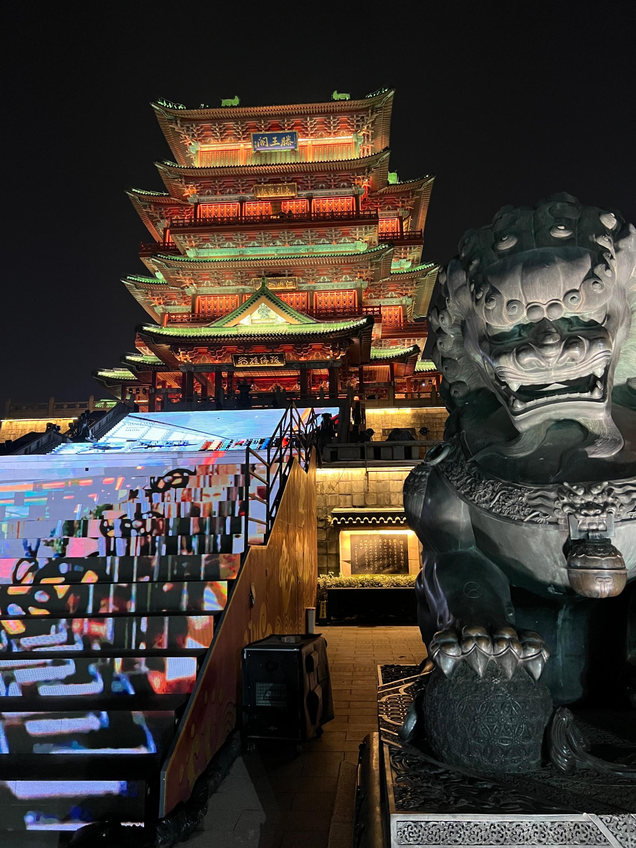 4, 夜游拍照点滕王阁➡️灯笼墙➡️赣江江景➡️文创店;滕王阁随便一拍都是大片,夜景不是白天可比的;一定记得要在灯笼墙合影拍照,这是一个网红打卡地;沿着北区一路走沿线可以看到美丽的江景,对岸的双子塔,还可以看到滕王阁游轮;最后滕王阁文创店,纪念品点等值得看看拍拍。