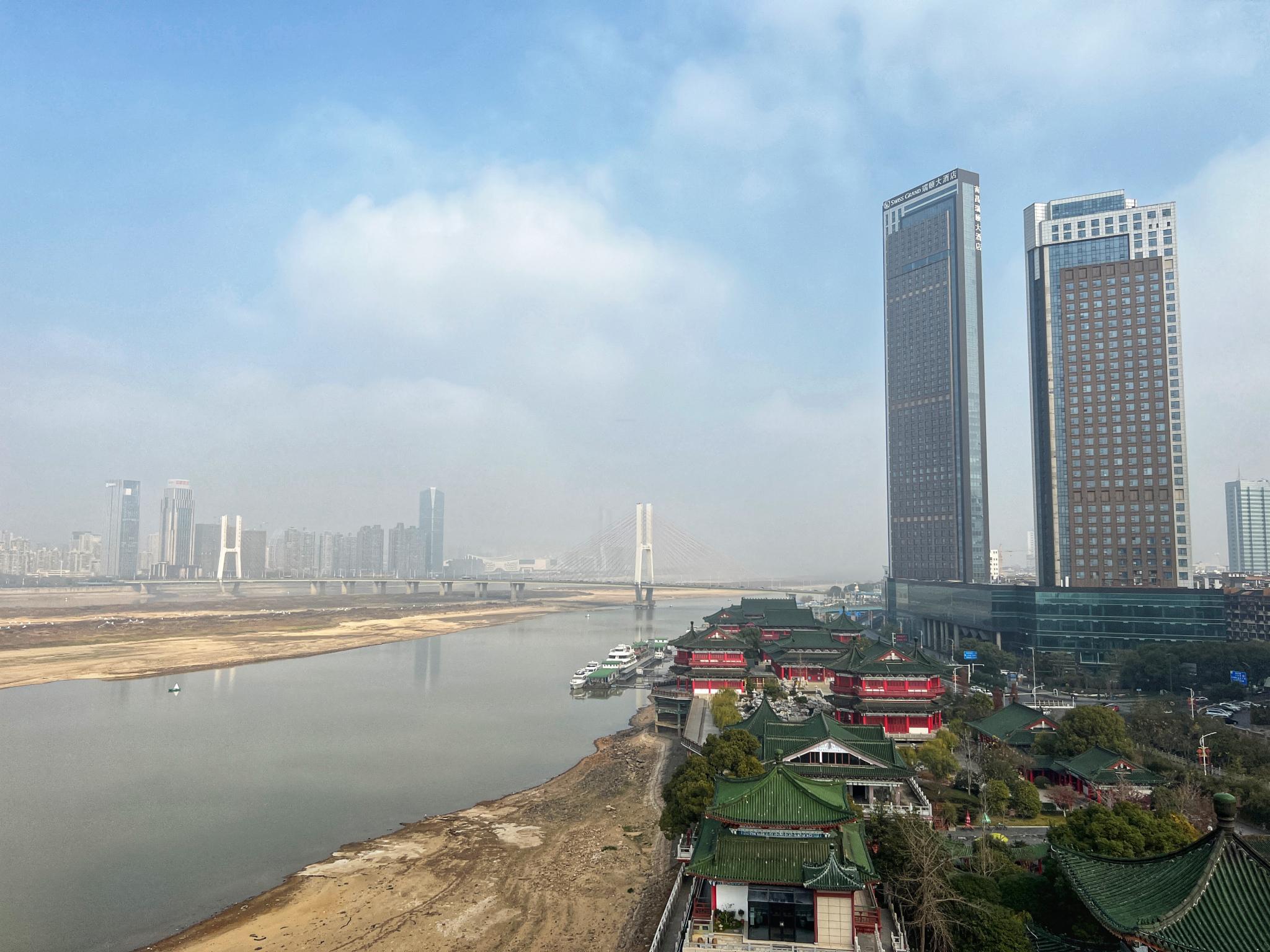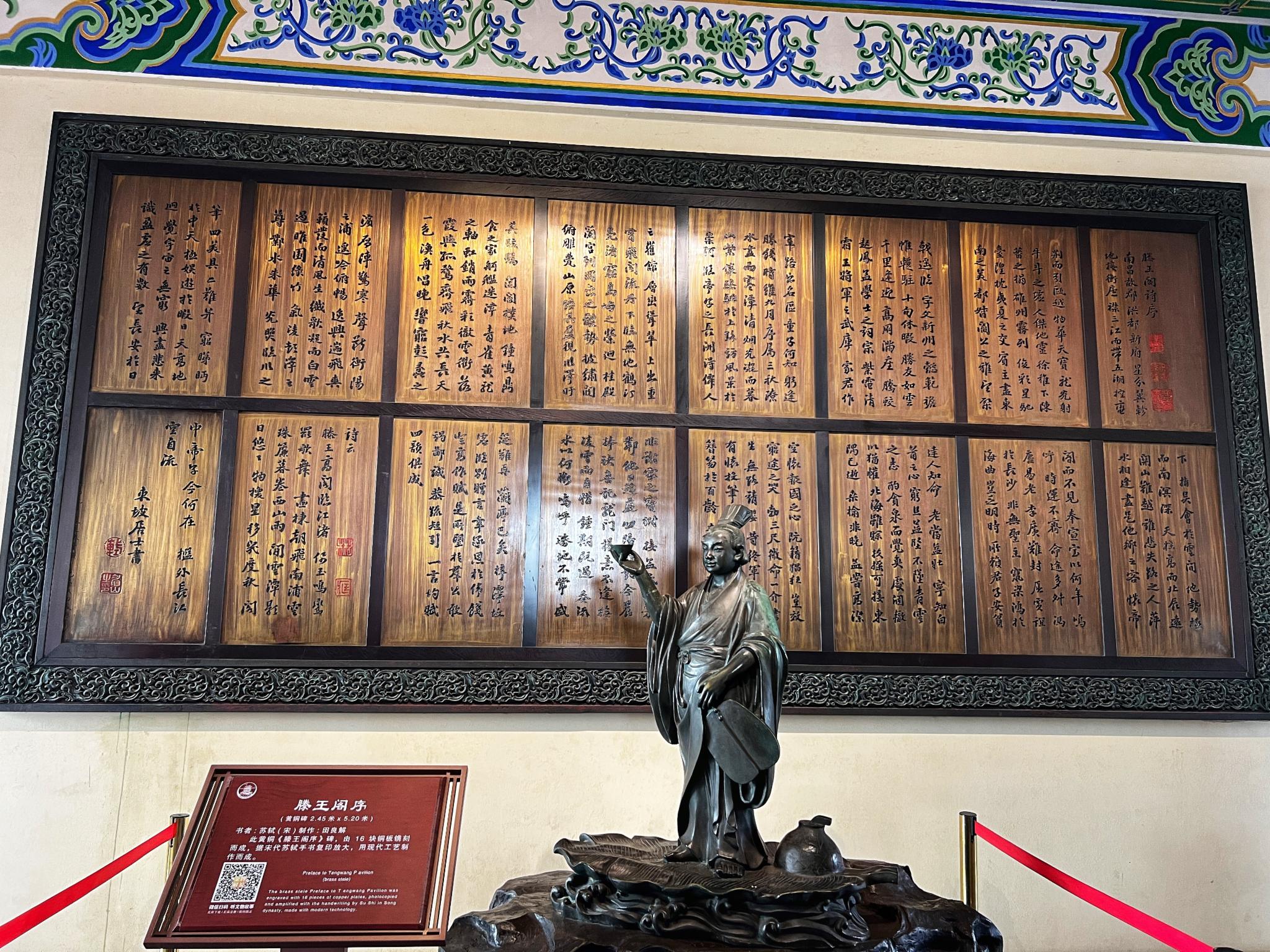 到最高层,正厅迎面是苏东坡手书的千古名篇《滕王阁序》,凭栏骋眺望,南昌城景致尽收眼底。