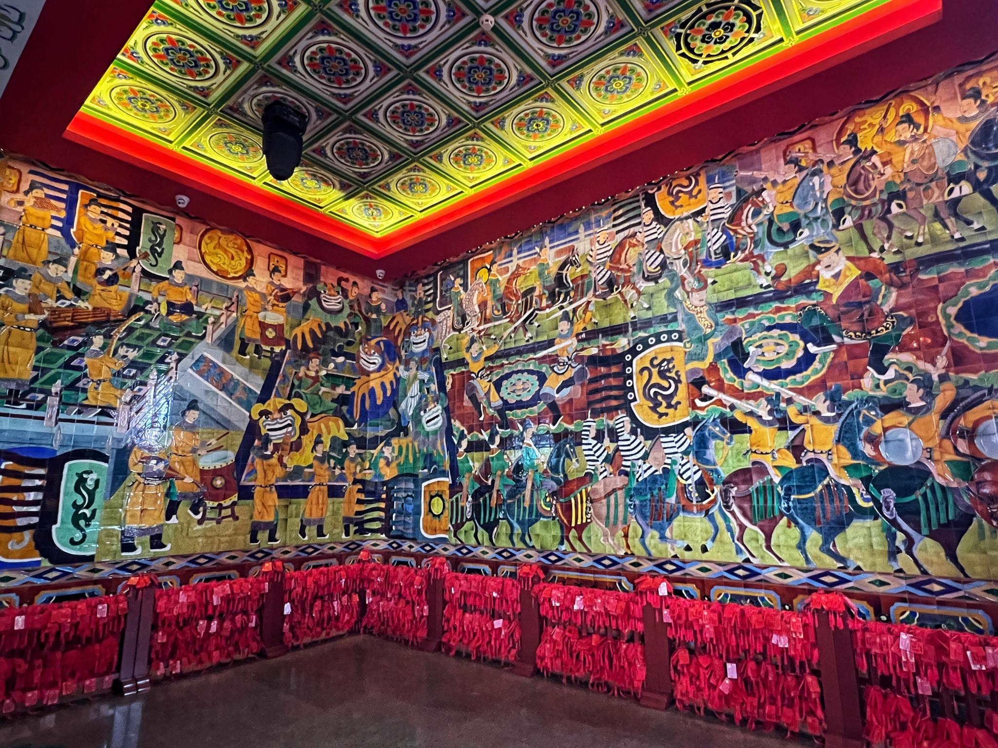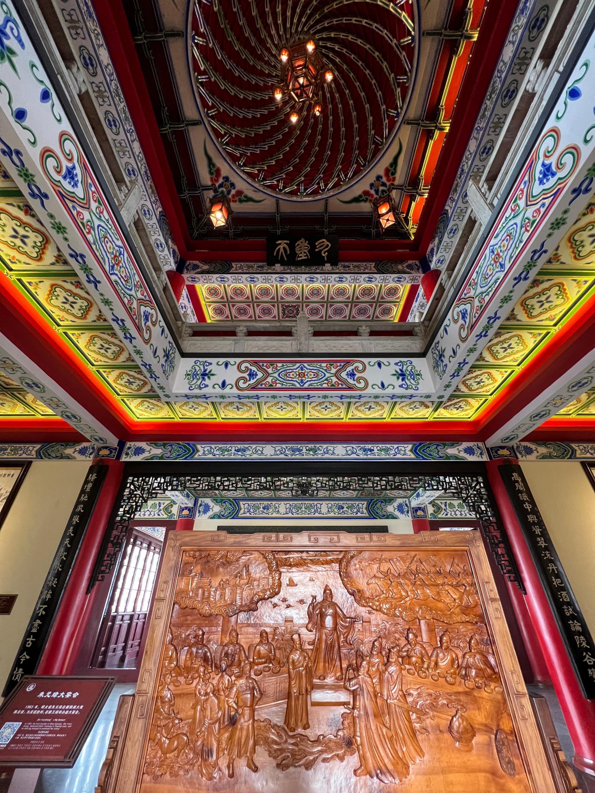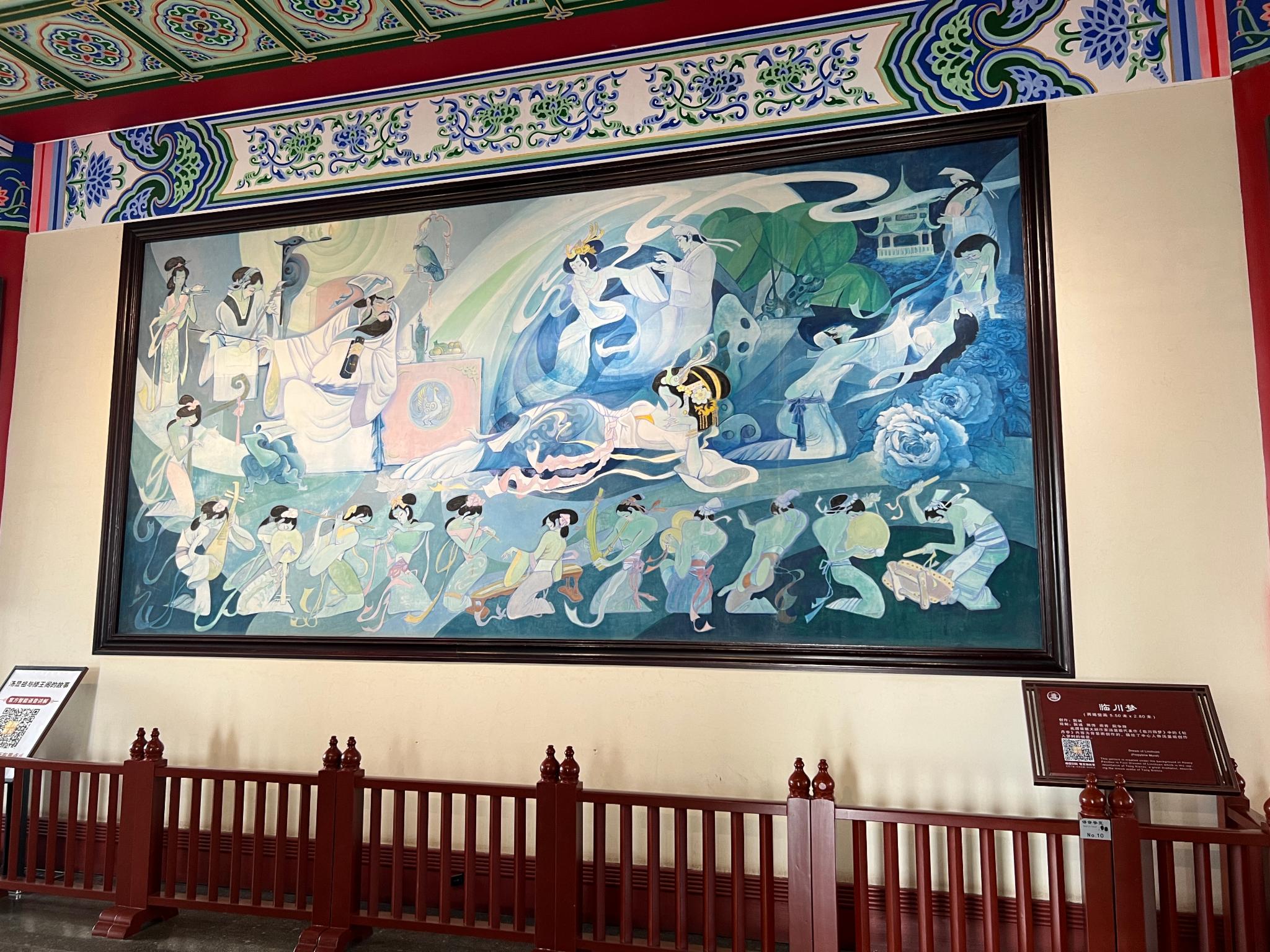 沿着楼梯上第二层,正厅是大型工笔重彩丙衡壁画《人杰图》,绘有自秦至明的80位领风骚的江西历代名人。
