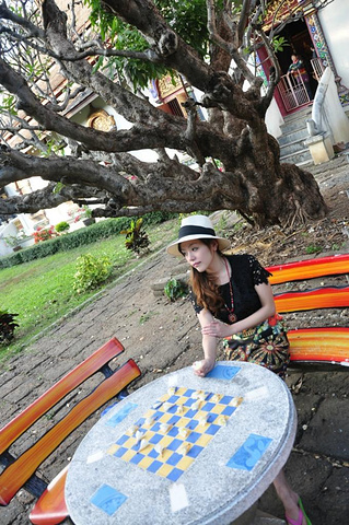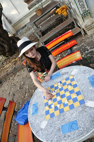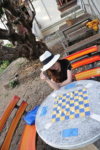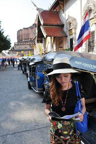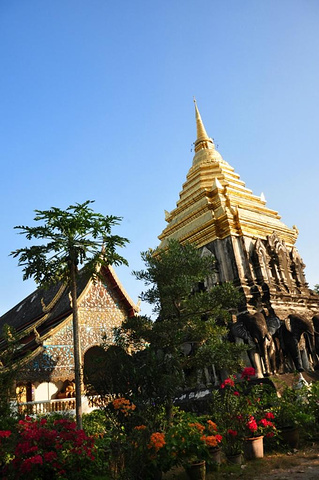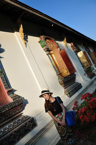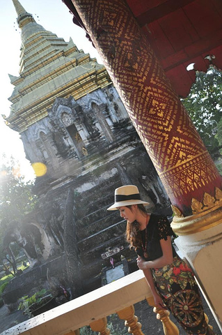 盼道寺出来。想去看看清迈众多寺庙中最古老的清曼寺。随便找了个tuktuk问了价格,居然开口要100B,我去,不是说古城内20b招手即走吗?果断摸出地图决定徒步前往。地图上看着还蛮远,但午饭尚未消化,走路正好是个不错的方法,而且它正在昌朴克门 Chang phuak gate附近,完了刚好能过去找找大名鼎鼎的凤飞飞猪脚饭。 清曼寺。Wat Chiang man。实际上没有地图上看起来那么远。行走寻找的途中遇见这家有可爱小木马的店铺。店内卖的首饰和民族裙子都蛮好看,只是尺码都过于宽松偏大了,价格差不多200多人民币一条。真心能接受。只是我自己已经背了一箱子裙子过来不好再买了,还要为周日夜市预留箱子的空位。所以先忍了。拍个照吧。可爱的小木马。 拎着奶茶拿着红薯球球悠哉地继续寻找清曼寺。转过小巷街角居然就在眼前。巷子里可爱的绿色小车车,转角墙壁上有趣的涂鸦,对街美好的薄荷色小屋。让人心动。 清曼寺。兜兜转转终于找到你。清曼寺著名的是15头大象驮起来的舍利塔。灰黑色斑驳的陈旧颜色向世人述说着它的历史。这时候刚好是夕阳西下时,斜照的阳光在舍利塔金色的尖顶上留下闪烁的光晕。美不胜收。 静静坐着听寺院晚钟。暮色四合的时候,与你共处于此。在世界的某处美丽角落,我们彼此为伴。这一刻,属于你和我。