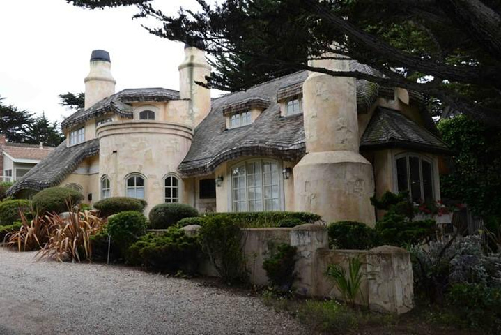 1、 美国卡梅尔小镇(Carmel by the Sea)民居。摄于加州美国一号公路(Route One USA),Carmel Aug 22 2013。 美国诗人鲁宾逊·杰弗斯(Robinson Jeffers,1887-1962)于1914年写道,“当驿马车自蒙特里(Monterey)攀上山顶,我们俯视卡梅尔湾(Carmel Bay),透过青松与海雾,显而易见,我们在懵懂中已来到必然之地。”他惊喜所言“必然之地”就是卡梅尔小镇。小镇以北有世界著名的Pebble Beach高尔夫球场,南有壮观的Big Sur 海滩。沿主要街道Ocean Avenue迤逦而下,会看见著名的白沙滩。小镇中临海而居的宅子掩映在绿树繁花中,依地形蜿蜒而建,一切规划都恰到好处。房舍每幢都不同,欧洲风格、亚洲雕花木窗,西班牙米色墙壁,法式镂花铁门……风格各异,集结各种建筑风格的精华。