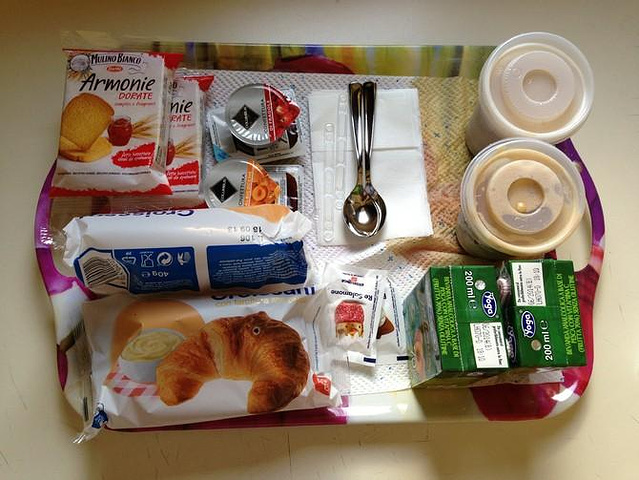我们第二天早上就着窗外清晨的阳光吃着grandpa给我们送来的早餐,真是一种享受。他家做的卡布基诺很香醇,那个Armoire牌的脆面包也超好吃,这个面包后来旅店很多都有当早餐,大爱这个脆面包夹着巧克力酱,沾着草莓酱啊! 图上有蓝色招牌的就是Hotel Calypso,建筑尖角上三楼的那扇窗户就是我们住的房间了。