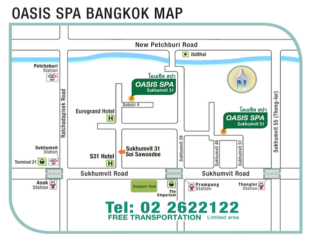 下面要强烈推荐一家位于素坤逸31巷,源自清迈的兰纳SPA,很多人应该都听说过——Oasis Spa。 由于现在清迈的游客量激增,Oasis Spa在清迈的两家店可以说日日饱和,不提前预约就前往的话肯定会无功而返。做SPA肯定是图个“清静、心静”,所以我在清迈的时候就预约了这家位于曼谷中心区巷弄内的避世庭园式的Oasis素坤逸31分店。 预约是通过Email进行的,Oasis专门有客服回复顾客的电子邮件,速度十分快,用词热情且有礼貌,并且所有内容都是店面直接授意的。这种写信给朋友一般的感觉很温馨,现在已经很少有店家通过Email进行预约或确认了。 如果是清迈的Oasis,店家可以提供古城区酒店的专车接送服务。 曼谷的交通状况很特殊,全程接送肯定是不可能的,不过店家还是很有诚意地提供接送至最近BTS车站的服务。并且会通过电邮的方式告知所在酒店前往BTS车站的交通方案。 我们预定的是两个小时的“Lanna Style”,先进行传统泰式按摩舒展筋骨,然后用泰式草药热敷松弛紧张肌肉,最后是芳香精油全身按摩。 价格方面是2000铢/人。这个价格比起同等项目的Veranda Spa来说要便宜不少,不过个人感觉Veranda的环境要更胜一筹。手法方面按摩部分Veranda可以做到深度私人定制,其余的不好讲,因为Veranda我们做的是Coffee Scrub,并没有上过油,不好对比,但感觉Oasis油用得重了些。 院子里有一棵榕树。“Oasis”翻译过来就是“绿洲”的意思,与悦榕庄的部分理念不谋而合,两家集团公司都深度致力当地环保事业。 两小时结束后,已经有车在待命将我们送到BTS车站。我们提出要在院子里逛一会儿,司机很随和地说逛多久都可以。 送我们到BTS车站的车上用了和店里一样的香薰,也许是希望这种气味与顾客一路相伴,让我们能够记住它。这比广告本身更有效力。