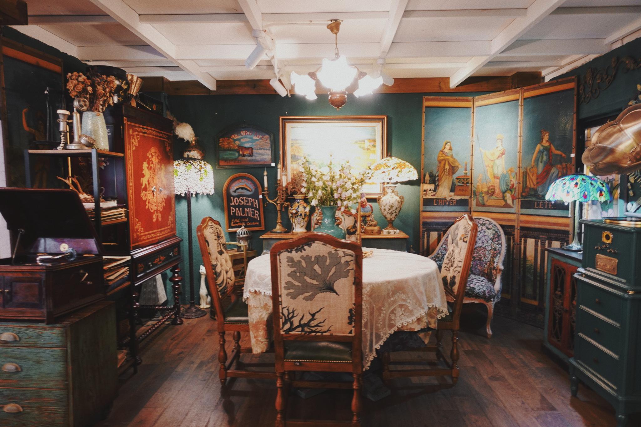 这里的每一样东西都是老板从国外搜寻回来的。大到沙发、木椅、屏风;小到相机、风扇、留声机;甚至数百年前的一支口红、珊瑚手串、玳瑁梳子、琉璃罐、水晶杯……