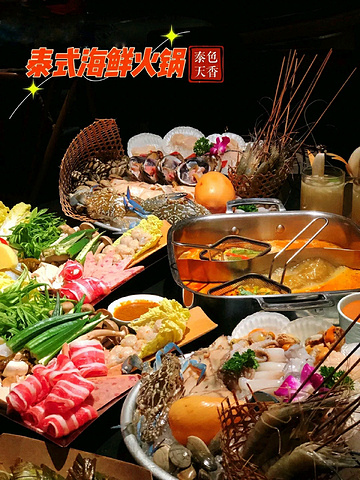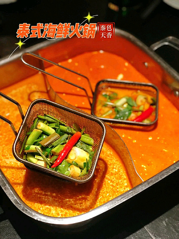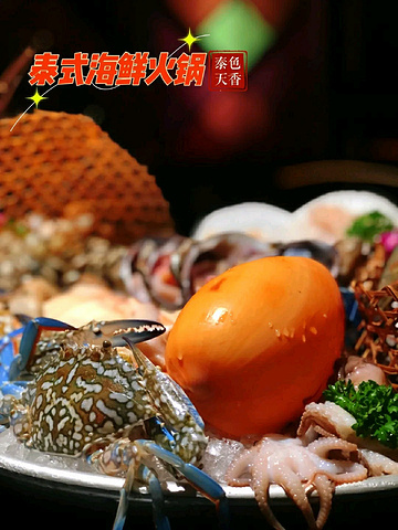 可以吃到虾膏虾籽的泰式海鲜火锅,你一定要来试试 这家是成都老牌的泰式海鲜火锅了,被朋友们推荐了很多次,最近也做了升级,特别是听说店里有特别浪漫的海洋世界,于是约上朋友一起过来打卡了。 ——————💌餐厅信息💌—————— 餐厅名称:泰色天香泰式海鲜火锅(科华店) 📮餐厅地址:锦绣路1号附40号保利中心一层 🚌交通路线:地铁8号线川大望江校区站C口出站步行80米 ⏰营业时间:周一至周日 11:00-23:00 ——————🍀餐厅环境🍀—————— 装修风格东南亚风情,很有特色,暗色的色调显得高端典雅。特别是店里长达8米的水族箱,各类美丽的鱼在水里游动,在旁边就餐显得格外浪漫有情调。 大桌小桌都有,最里面有多人就餐的圆桌,围坐在一起就餐特别有氛围。 ——————♥️餐品味道♥️—————— 泰式冬阴功火锅 :冬阴功锅底呈现出两种不同的口味,一边是经典的冬阴功锅底,一边是更浓郁辣劲更足的天香锅底,辣度是经典的5倍,海鲜在里面涮烫,香辣味更足,喜欢吃辣的朋友一定不要错过。 海鲜拼盘 :品类众多,食材新鲜,大个鲍鱼,海螺肉,兰花蟹,北极贝,八爪鱼,虾选用了品质更好罗氏虾,这个季节吃特别棒,满满的虾膏,幸运的话还可以吃到鱼籽哦,口感很不错。 泰式春卷 :春卷炸的外皮酥脆,吃的时候裹上生菜,爽脆搭配,再蘸上特调的酸辣酱,吃起来口感层次特别丰富。 菠萝饭 :份量超足,腰果,菠萝,肉松,大虾,舀上一勺,你会发现最底下还有紫米,软糯香甜,吃上一碗,真的很满足。 泰式经典热奶茶 :吃泰式火锅当然要点上一杯香醇的泰式奶茶,搭配了糖水,可以自己调节奶茶的甜度,丝滑香甜。 ——————☎️推荐理由☎️—————— ✔️菜品丰富新鲜,都是从产地空运过来,保留了食材的新鲜度,呈现给你最原始的美味 ✔️环境满分,水族箱旁,带上你的喜欢的人来这来一场浪漫的约会吧 ——————🛎餐厅服务🛎—————— 服务方面热情周到,进店后就有服务员指引就坐,菜品全程帮忙煮制,贴心周到,有什么要求都能及时地得到回应。