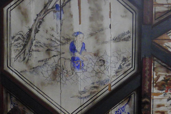 路过文昌阁,门倒是开了,工作人员在里面搞装修,入口处无人把守,遂偷偷潜入,大殿和各地的亭台楼阁大同小异,吸引我的是那些年代久远的明清壁画,色彩艳丽,构图完整,很是精美。