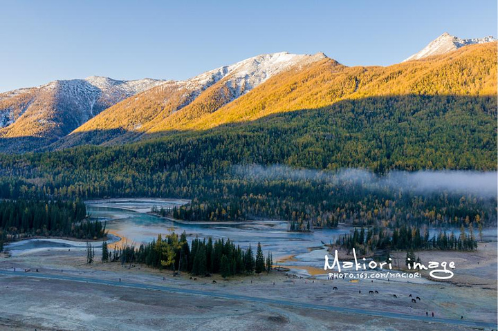 晚上住在喀纳斯景区的图瓦人村里……晚上真的蛮冷的……不过还好被子比较厚…… 一早起来要赶紧出发去坐第一班区间车杀到最美丽的神仙湾……去拍晨雾