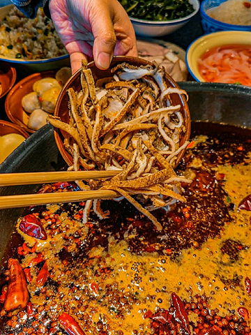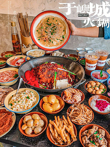 岁月还是留下了美味的痕迹~在这里捡回了童年吃火锅的氛围 ♡ 地地道道的重庆老火锅味!这家新开的火锅店真是又辣又过瘾~味道就是稳!真的是闻着味就进来了! ————————🌵环境🌵———————— 市井气息浓厚🌿非常宽敞的大堂 像是叙利亚战损风~水泥墙,工业风设计! 80,90年代火锅店的氛围感! 墙上都是励志的话语,非常热血! 有一面墙上写着坚持手工制作,窗口可以看到厨房,所以菜新鲜出品都是现切! ————————推荐指南♡———————— 锅底很实在,用料也很扎实!老♡板就是个实在人,菜品堆的满满的碗,一点儿没舍不得! 🍅毛肚肚丝 每日限♡量供应,又很新颖的一道菜 师♡傅刀功很好,毛肚丝切的细细的 可以把毛肚肚丝当面🍜一样吃!麻辣软糯,鲜嫩爽脆 🍅鸿运当头 猪脸,猪耳朵,猪舌头都是胶原蛋白满满的卤味 吃起来都是麻辣里带着卤味,口感是又耙又糯!滋味浓厚,唇齿留香! 🍅手工糍粑 这个糍粑放那里一看就觉得好吃! 追加了一份,蓬松柔软,吃起来香甜~ 蛋炒饭 一定要点一份蛋炒饭,真的好香~ 猪油炒的,那个蛋金灿灿的,上面还有油珠珠,真的好好吃!吃完了简直意犹未尽~ ??手打柠檬茶 酸甜冰爽超♡级解辣! 新鲜手打的柠檬茶,果味香气足!柠檬自带的果味中和淡淡的甜,和麻辣的火锅真的是太搭了~喝的出的新鲜! 💛店名:于屿城火锅 💛地址:二环路东五段132号