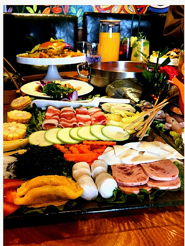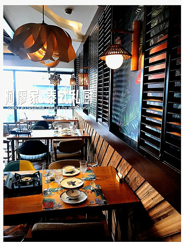 今年去不了东南亚了 可我可以吃点泰餐解解馋~ 在成都越来越多的泰餐里,居然让我在这里挖到宝! 不是资♡深吃货还不太容易找到,这家阿廖泰式私房菜藏在写字♡楼里! 💛店名:阿廖家私房泰式海鲜·泰式私厨 💛地址:蜀都万达SOHO13号楼604 💛营业时间:11:30-22:00 🌵店面是满满的泰式风格,壁画漂亮有格调,落地窗的光线刚刚好,温柔的撒在座位上~ 推荐指南▸▸▸▸ 🔸泰式火锅 丰富的海鲜拼盘,有丰富的鱼类,贝类,泰国虾,活鲍♡鱼,青口,生蚝,泰国兰花蟹等! 搭配酸辣开胃的冬阴功汤,就是冬天暖胃又暖心的存在~ 🔸香兰叶包鸡 我其实一直很喜欢这个,属于我吃泰国菜必点的! 里面的鸡肉糯糯的,因为包裹着蒸的,鸡肉味道非常入味~ 🔸主厨咖喱皇♡家蟹 比较正宗的泰式咖喱,个人感觉咸甜风味,蟹大肥美肉质鲜,里面还配有土豆块,汤汁非常下饭秒变干饭人! 🔸菠萝🍍炒饭 鱿鱼➕虾➕肉松➕蛋丝 内容丰富,炒饭颗颗油珠珠,泰式风味 卖相佳,也在泰式口味的基础上进行了改良,很符合本地人口味,适合各种聚餐!