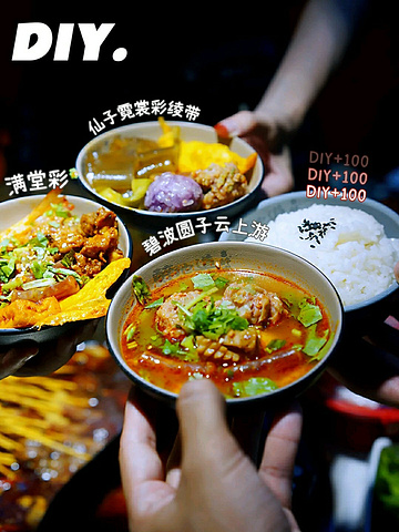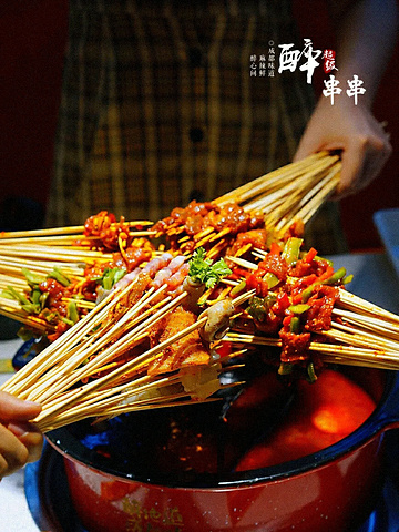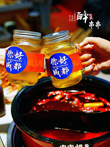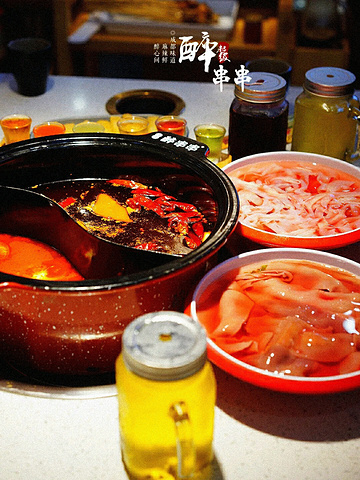 原来住东门时,很喜欢的大成醉串串现在升级成了超级醉串串了!不打广·告,却默默🔥火了12年的老成都串串✿ 老远就排起了队,我和小姐妹还好来的早,磕了会瓜子就进去就坐了❣️ 🏠店名▸超级醉串串(原有名:大成醉) 📍地址▸建设南路160号附6号 💰人均▸50|丰俭由人 🕰时间▸11:30-02:00 菜品●○●○● 🔶番茄🍅鸳鸯锅 一半红油,一半番茄汤,火辣的同时可以喝点开胃汤,一锅两吃,番茄锅烫肉圆子也很鲜美。 🔶跳水泡菜包牛肉 别的牛肉就不说了,其他店都有 泡菜系列真的是独·家特色,因为他有不同的好几种泡菜▹酸菜,脆萝卜,双椒,盐姜盐辣椒每个口感真的是家常美味,进门的时候我就说怎么看到了这么多坛坛泡菜。 泡菜爽脆酸辣,牛肉滑嫩鲜美,两者结合奈斯♡ ◉◎◉◎◉◎◉◎◉◎◉◎◉◎◉◎◉◎ 各种盘盘菜也很新鲜,我超喜欢黄喉 饮品推出的🥤“你好成都”夏日里清凉解渴 两个口味百香和酸梅都蛮不错♡ 小吃也让我很惊艳,椒香锅巴土豆,包浆豆腐,兔兔布丁🍮,红糖糍粑各有特色❣️ DIY■□■□■串串菜品种类超多,非常适合DIY 充分动起我们的小手♡ 我们争取有荤有素有饭有汤,搭配恰当 再赋予它充满灵魂的紫薇命名法 🔸满堂彩 营养丰富的海陆空大杂烩♡ 加上精华之处的牛肉辣椒酱♡ 🔸仙子霓裳彩绫带 用颜色比较鲜艳的蛋饺,紫薯搭配,点心居多❣️烫的美味的宽粉 再浇上一勺麻辣的红油汤底,太香了 🔸碧波圆子云上游 番茄🍅汤锅打底,配上经典肉圆子,撒上香菜提鲜❣️