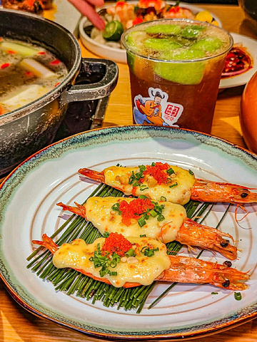 又来吃这家寿喜锅了!吃了成都这么多寿喜锅自助,最爱的还是这家店! 除了和牛自助,这里还有全成都花样最多的私房料理,人均100+的性价比可以说是天花板级别了~ 🔴店名:牛丞丞·和牛寿喜锅(太古里店) 📍地址:下莲池街34号 🚇交通:地铁3号线新南门站C口步行650m 招牌俏皮可爱,国风与日式相结合,有趣灵动的装修风格,店内宽敞明亮~ 🌟亮点: ✔️一次就能吃到和牛9种不同的吃法~ ✔️M7、M9和牛和安格斯牛肉不限量随便吃 ✔️水果、冰淇淋🍦、甜品🧁、15款进口饮料🧃不限量 丞丞寿喜锅 推荐点双拼锅,一次性可以吃两种味道~现场炒制的寿喜锅真的太香了! 我们点的和牛大骨汤拼寿喜锅,大骨汤用来涮海鲜,很养生~ M8-9澳洲和牛上脑芯 堆成冰山的和牛品质太棒了👏,雪花纹理十分漂亮,在锅内涮至变色裹无菌蛋液吃,可以吃出奶香味,口感细腻顺滑,真的太美味了😋! 刺身拼盘 刺身的品质也很好,内容丰富有三文鱼、甜虾🦐、希鲮鱼、北极贝……都是很新鲜的~ 🦞海鲜拼盘 鲍鱼、墨鱼仔🦑、蟹肉棒、生蚝🦪、虾🦐、鱼片…真的是很有料的海鲜拼盘,舌尖的快乐~ 还有他家的🥔爆棚芝士焗土豆、和牛刺身、和牛汉堡🍔、冰淇淋🍦…… 每一样都很用心,很不得有十个胃可以吃完所有!